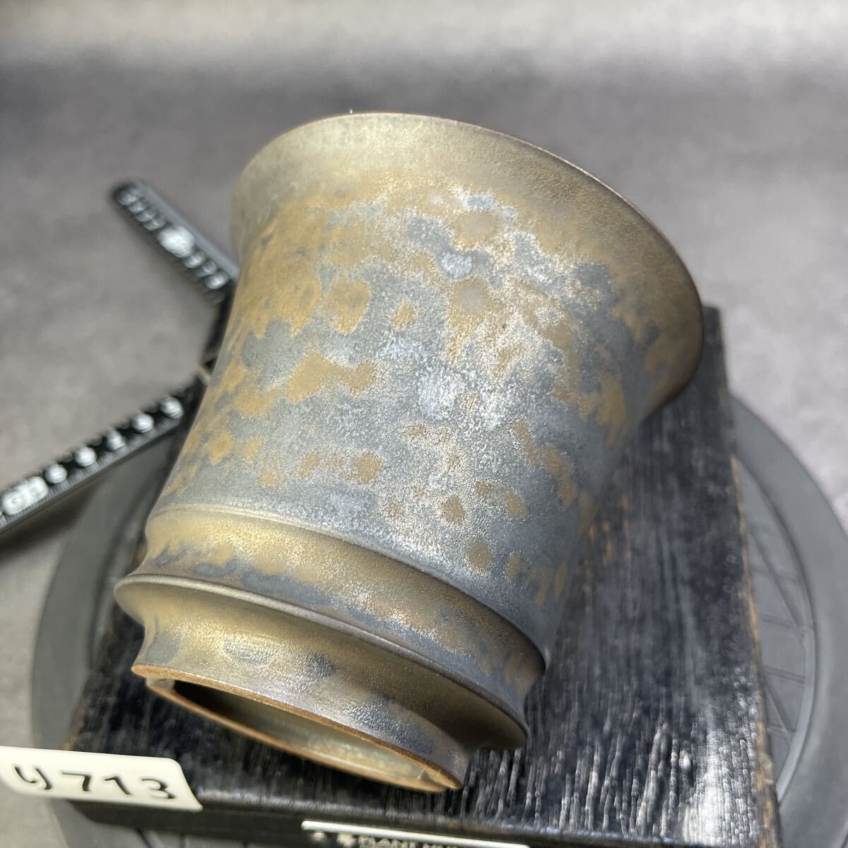 灰青と銅褐が溶け合う独特な表情を持つ釉薬。