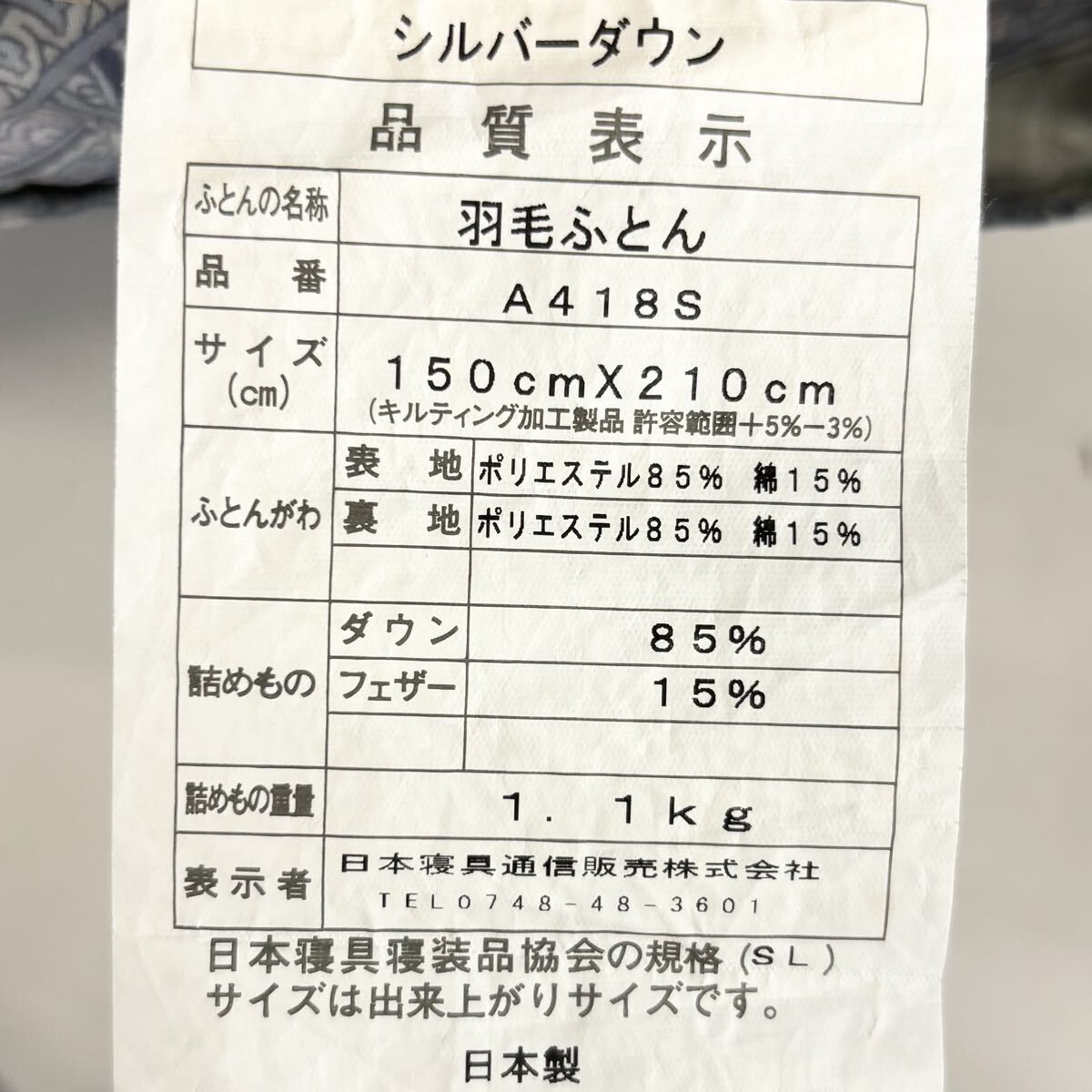 商品名 : 羽毛掛ふとん シングル 寝具 掛け布団 羽毛掛け布団 150×210