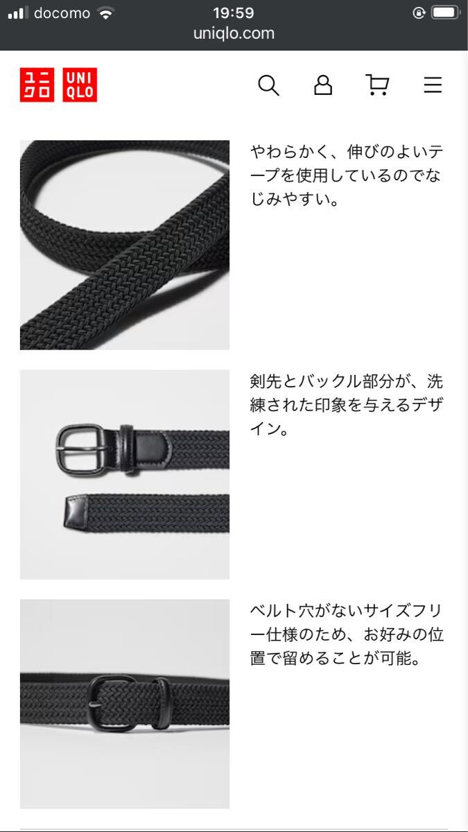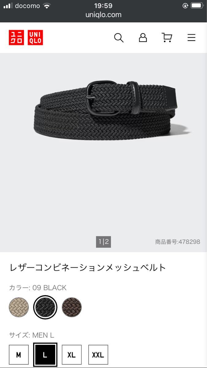 未使用品 ユニクロ レザーコンビネーションメッシュベルト サイズL