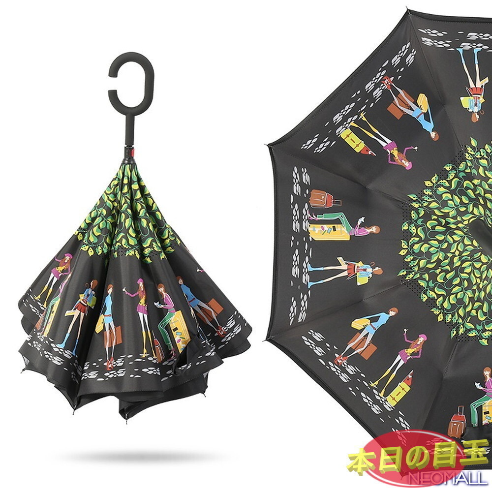 1円~ ☆ 逆折り式傘 【630-O】日傘 雨傘 自動広ける 手離れC型手元 自立可能 二重 ビジネス用 車用 男女晴雨兼用 通勤 通学 柄 模様