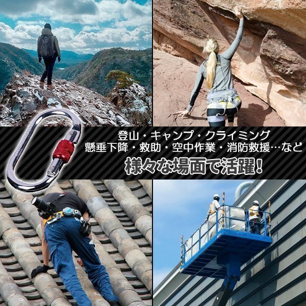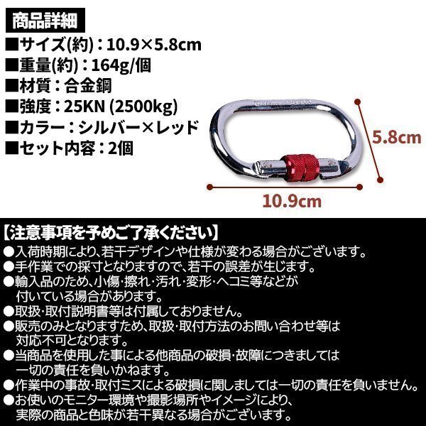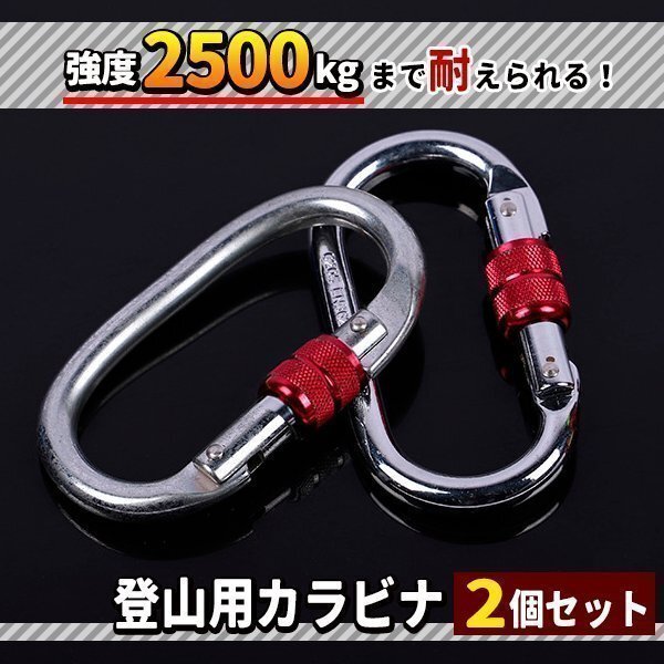 登山用 カラビナ 25KN 2個セット クライミングカラビナ ハードスチール 登山用具 環付きカラビナ スクリューロック