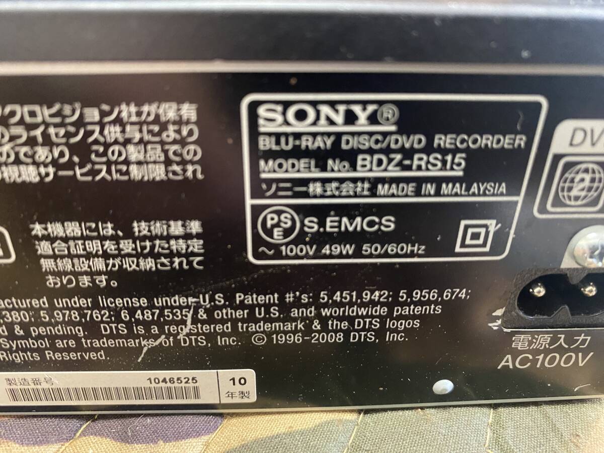 J7920 SONY ブルーレイレコーダー BDZ-RS15 リモコン付き 通電確認のみ 現状品