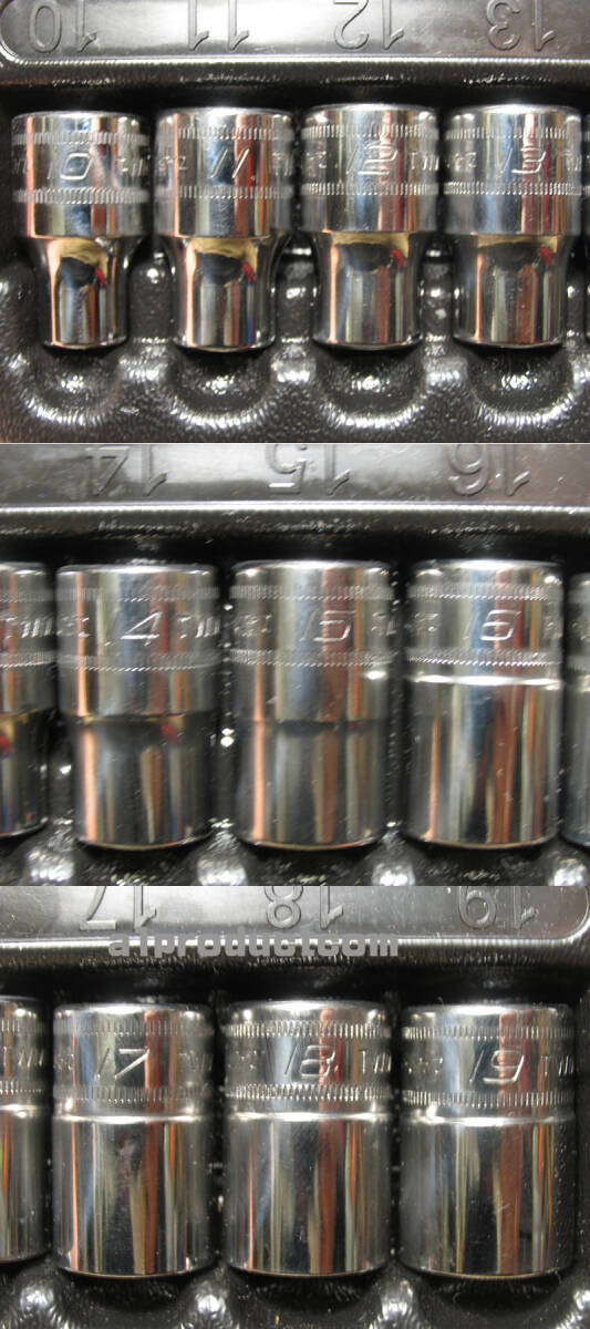 Snap-on 10 pc 1/2" Drive 6-Point Metric Flank Drive Shallow Socket Set (10-19 mm)差込サイズ1/2(12.7mm)6ポイント シャローソケットセット (10mm~19mm)