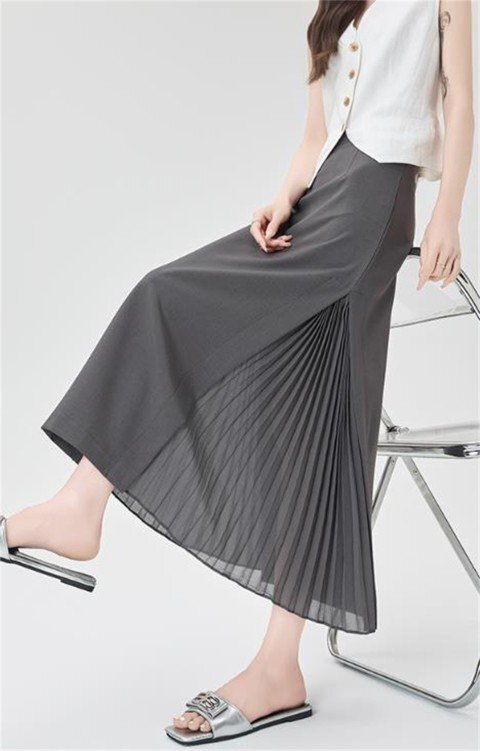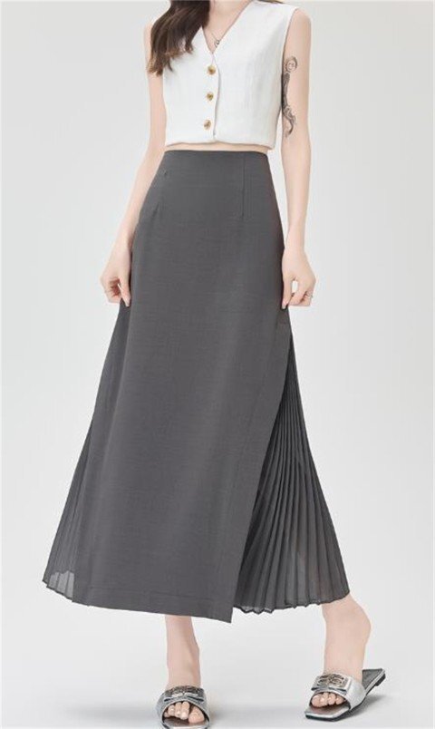 ロングスカート プリーツスカート フレアスカート Aラインスカート シンプル カジュアル お出かけ L ブラック