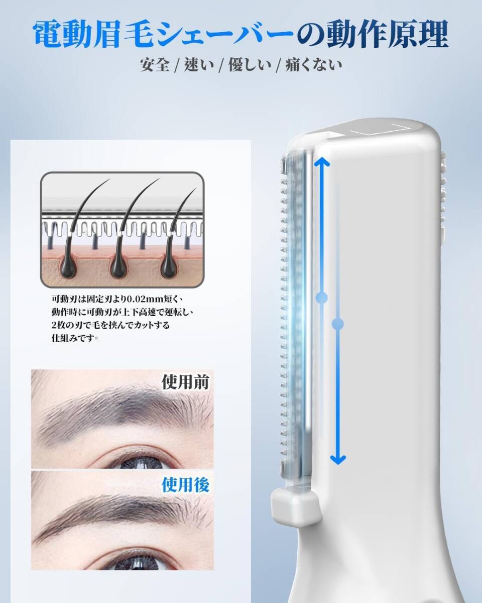 • 【丸型刃先&肌に優しい安全設計】この眉毛シェーバーは、可動刃と固定刃を組み合わせた毛髪カット設計を採用しています。中でも、肌に触れる固定刃は丸型の刃で、可動刃は固定刃より0.02mm短く設計されています。そのため、使用中に肌に優しく、安全性にも配慮されており、特に敏感肌にも対応しています。初心者でも安心して使える眉毛シェーバーです!