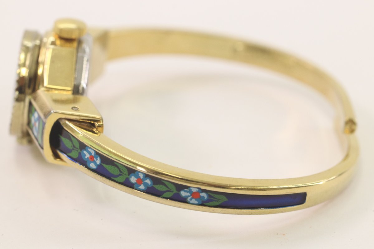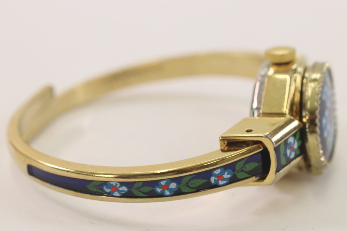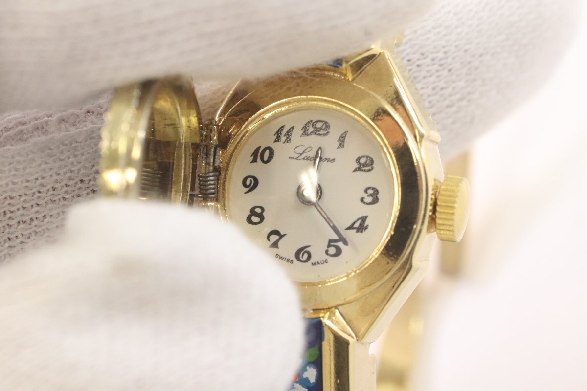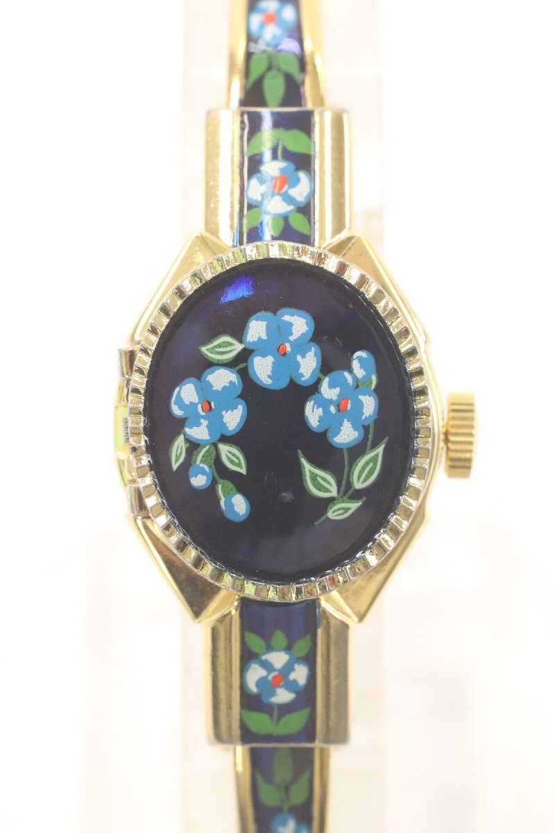 | Lucerne ルツェルン 手巻き バングルウォッチ レディース 腕時計 花柄 フラワー ブルー ネイビー系 ゴールドカラー 稼動品 3845-HA | |
