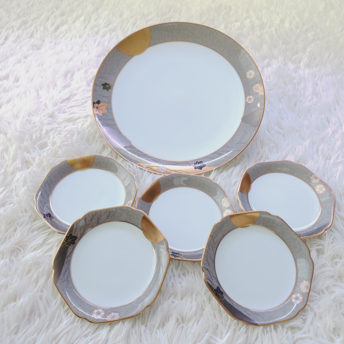 【未使用品】乃りたけ 食器セット 大皿1枚 小皿5枚  ノリタケ 金彩 和柄  ゴールドライン