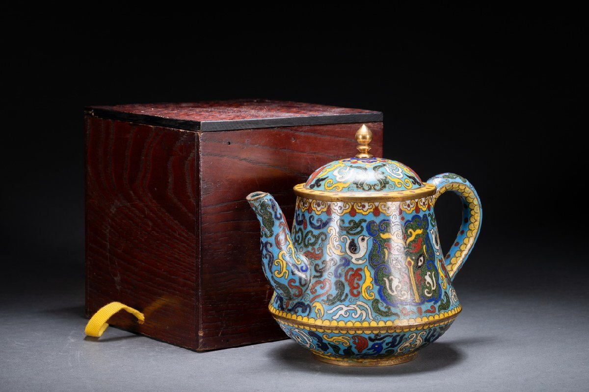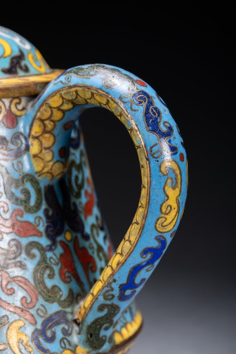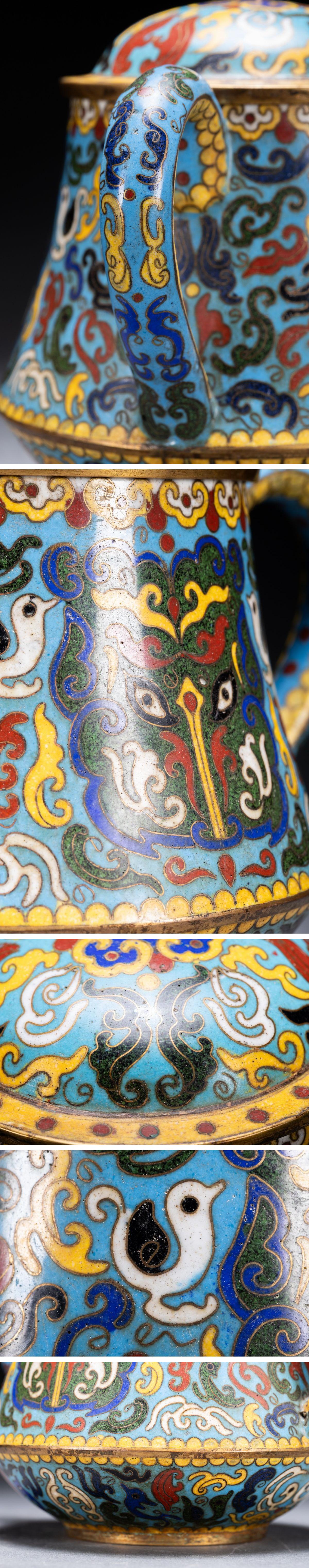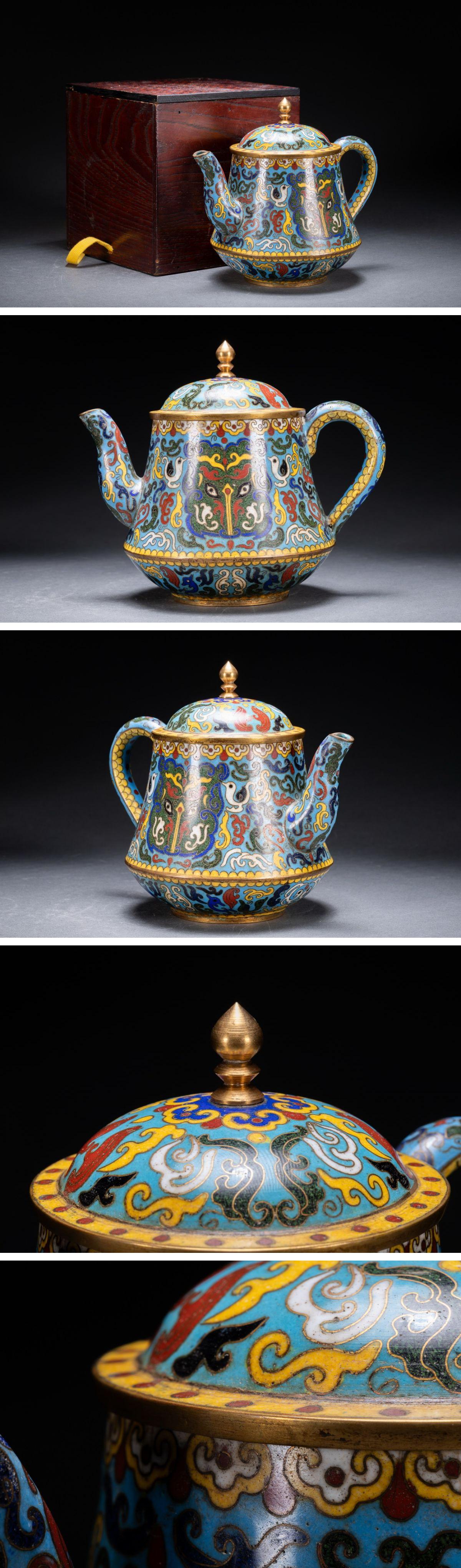 【雲錦】某有名オークション購入 時代物 中国伝来 景泰藍 饕餮面持壺 共箱 古置物 古擺件 古美術 時代コレクションWK10-28S2