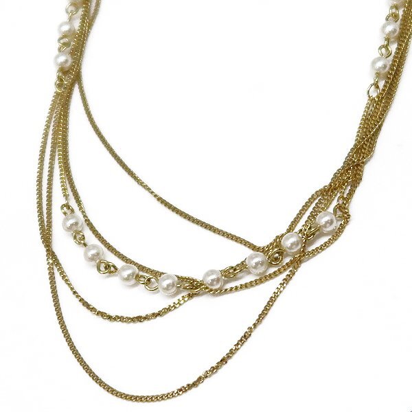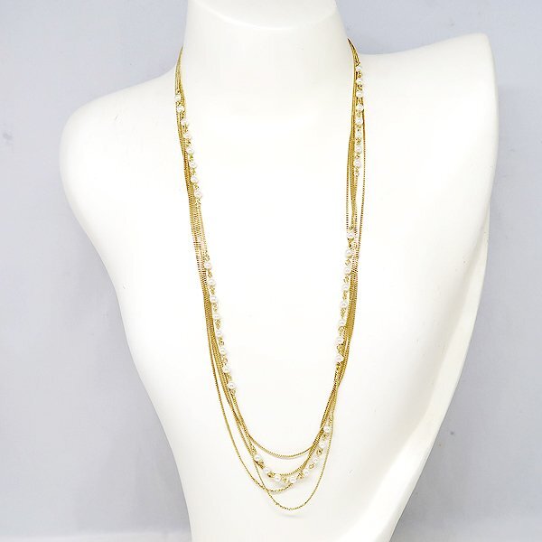 フェイクパール付き 5連 ロングネックレス
