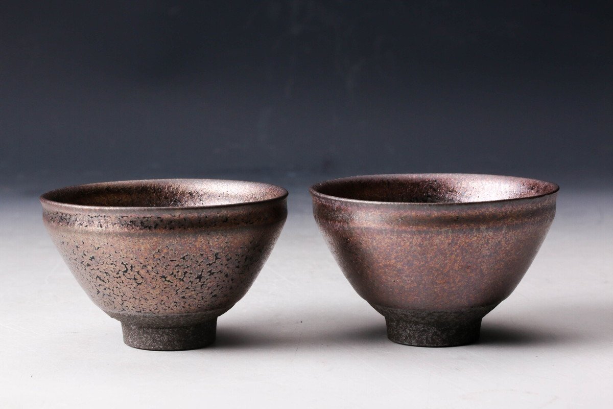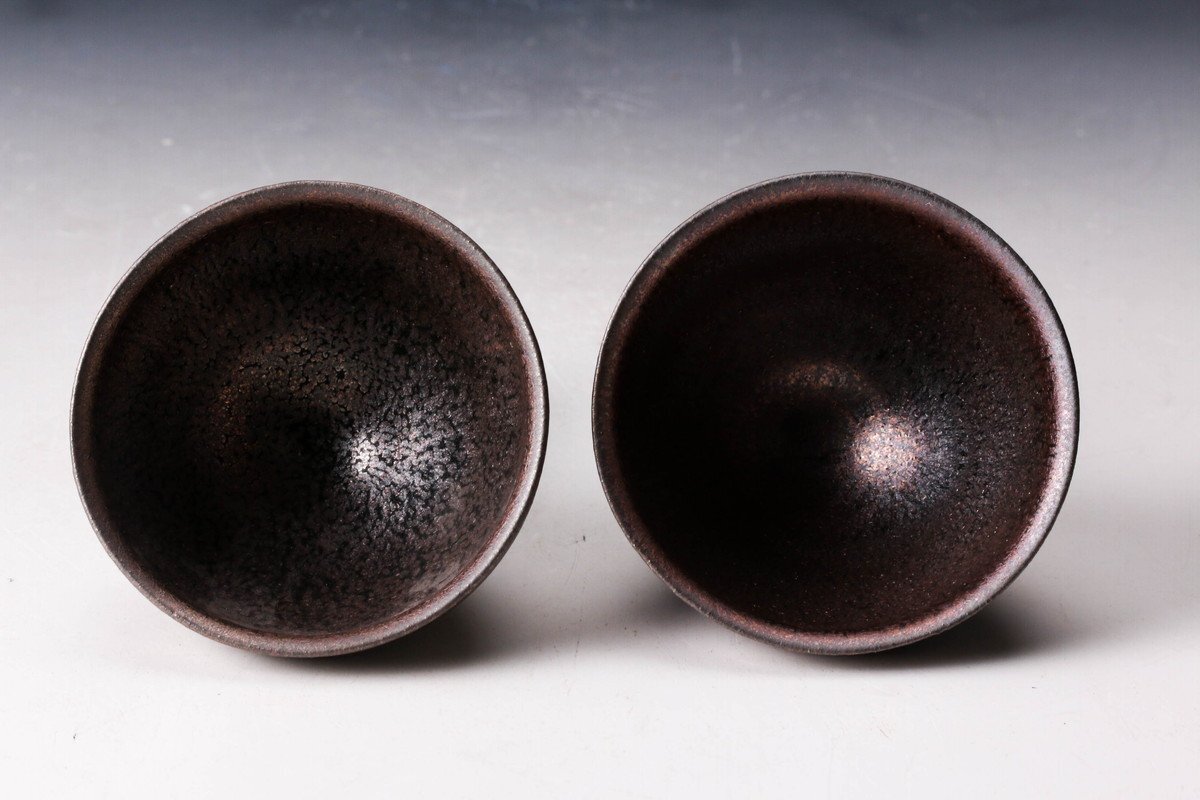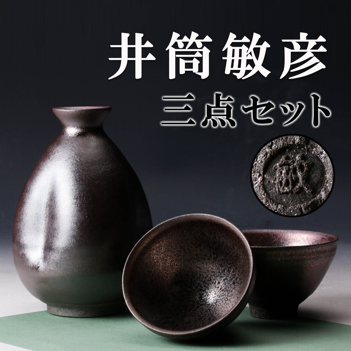 【佳香】井筒敏彦 絶妙な光沢、天目の力 天目 徳利 酒杯 三点セット 本物保証