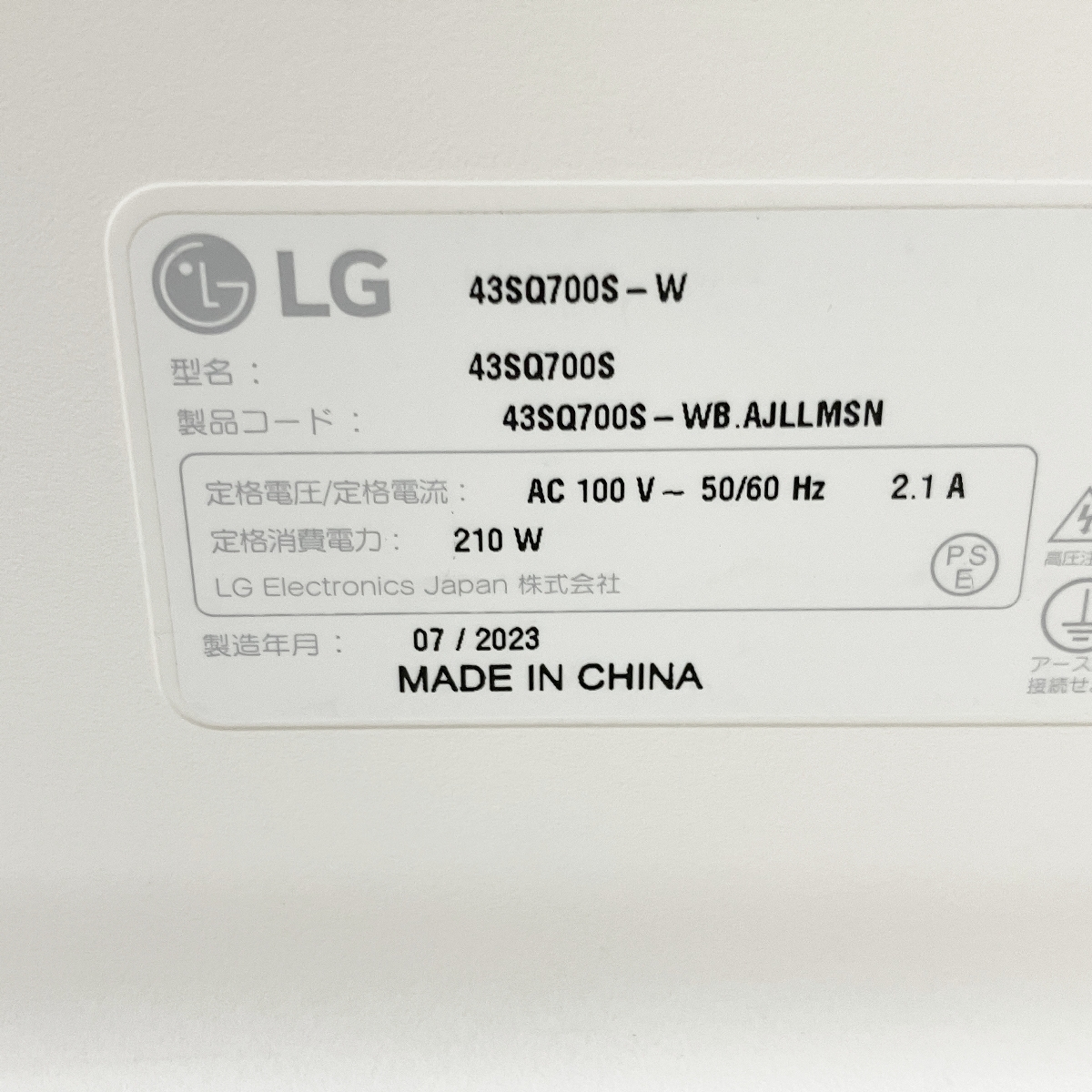 | メーカー名 | LGエレクトロニクス | 型番 | 43SQ700S |