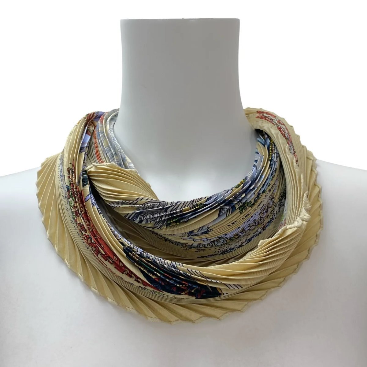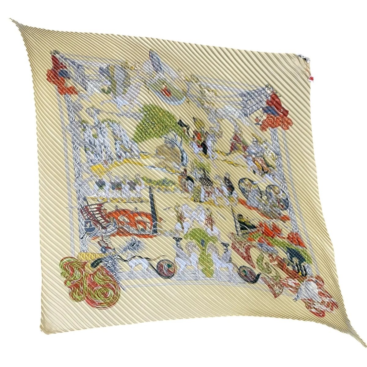 エルメス HERMES カレ90 Au FIL de la SOIE プリーツスカーフ ベージュ シルク レディース 5D889