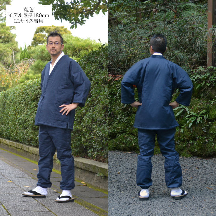 綿100% 裏キルト 中綿入り 作務衣 藍色 LLサイズ 普段着 和食店 飲食店 居酒屋 整体院 書道家 プレゼント さむえ ネイビー