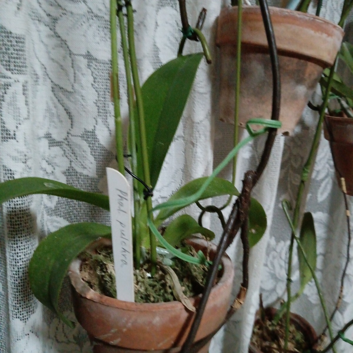 ファレノプシス、胡蝶蘭、と 同じ様な栽培で、温度17度位から23度位、夏は外の半日陰に出す、風とうしのよいところに出す。水は植え込みの水苔が乾いたら、あげる。