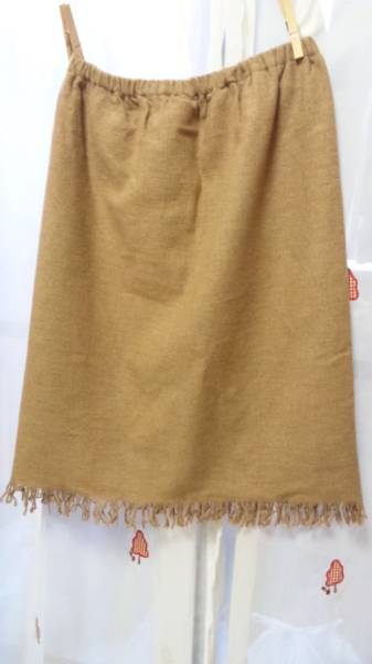 ◆裾のフリンジがオシャレな膝丈スカート♪ウエスト総ゴム楽チン♪ウール混で暖かみのある秋冬な質感ですがゃゃ薄手素材です