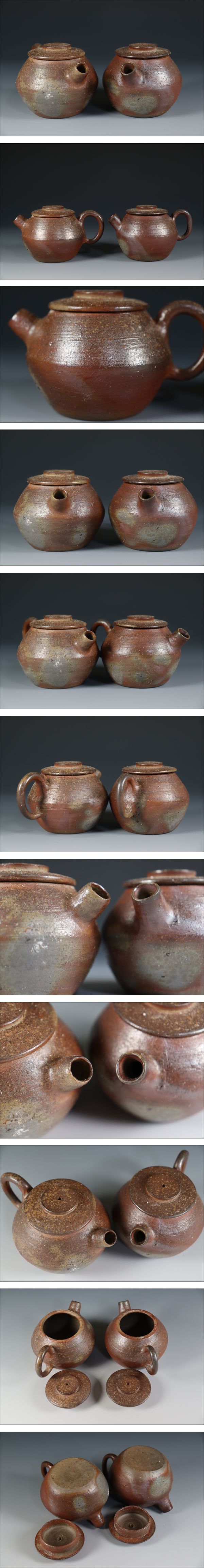 | 商品説明 | 商品名:蔵出し品 備前焼 作家造 後手急須 一対 煎茶道具 付属品:なし。 サイズ:高さ6,5cm、口径4,8cm、高台4,8cm。 状態:無傷になります。 |