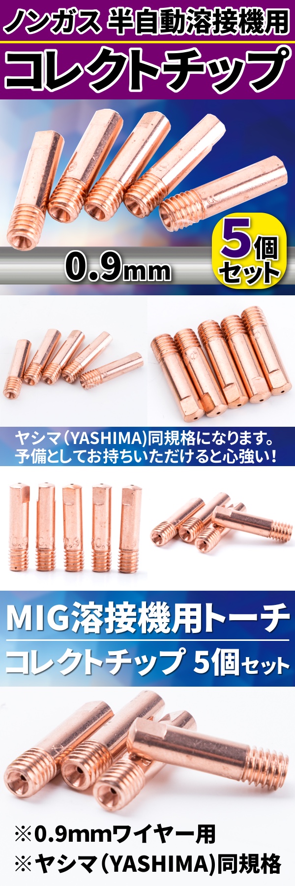 ★ コレクトチップ 5 個 セット ノンガス 半自動溶接機 用 0.9 mm MIG コンタクトチップ 溶接 DIY 互換 工具 補修 接着