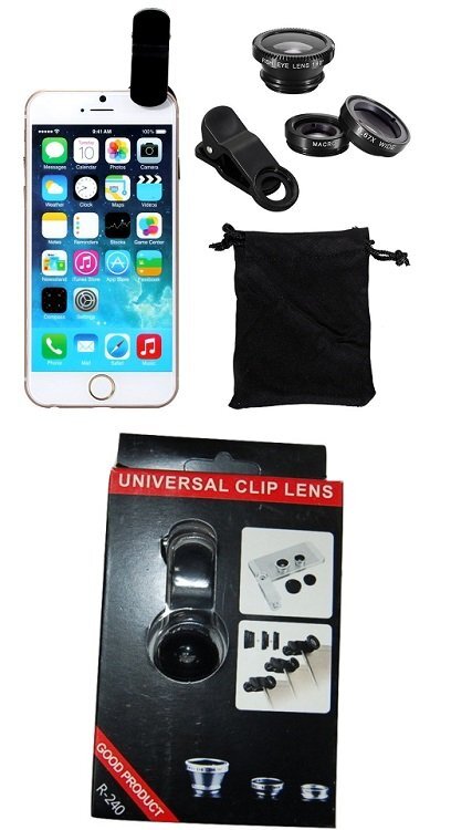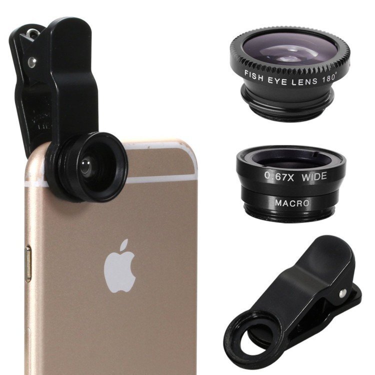 | iPhone・各種スマートフォン対応 魚眼 広角 マクロ 3in1レンズ 挟むだけで簡単装着 ブラック |