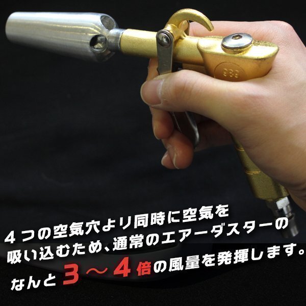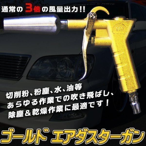 エアダスターガン エアーブローガン エアツール コンプレッサ Wエアー方式 黄金色 車内清掃 車内洗浄 エアパルスガン ホコリ飛ばし 清掃