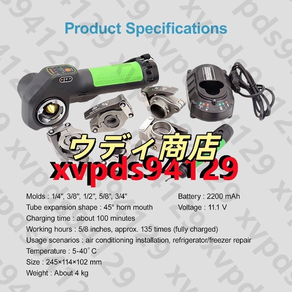 45°電動チューブエキスパンダキット 偏心チューブ電動フレアリングツール 冷凍庫/自動車修理用 作業照明付き 1回の充電で約135回使用可能