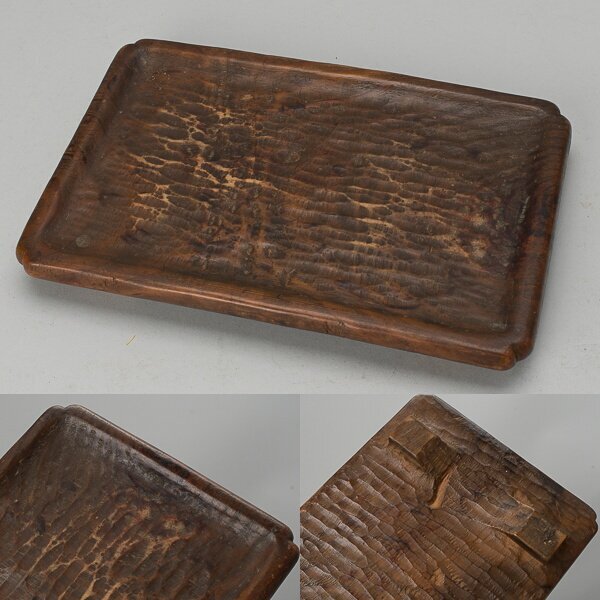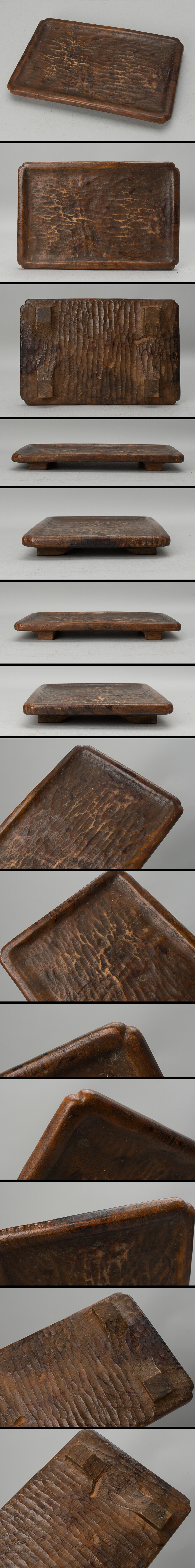 | 時代の木地盆。箱無。 春日盆のような形に刳りだしの脚を持つ珍しい盆です。 類品を知らず、どこの地方の盆か等私には分かりかねます。 サイズは、幅約27x18cm、高さ約3cm。 傷・直し・ヤケ・歪み等ありません。 使用によるスレ、アタリあります。 状態、詳細は画像でご確認ください。 |
