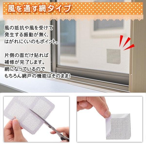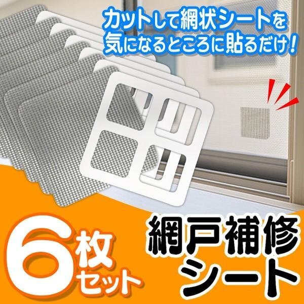 網戸の穴に 補修シート 6枚入り メッシュタイプ 10×10cm 貼るだけ簡単 強粘着 虫対策 風を通す 送料無料 TY◇ 網戸の補修シートセット