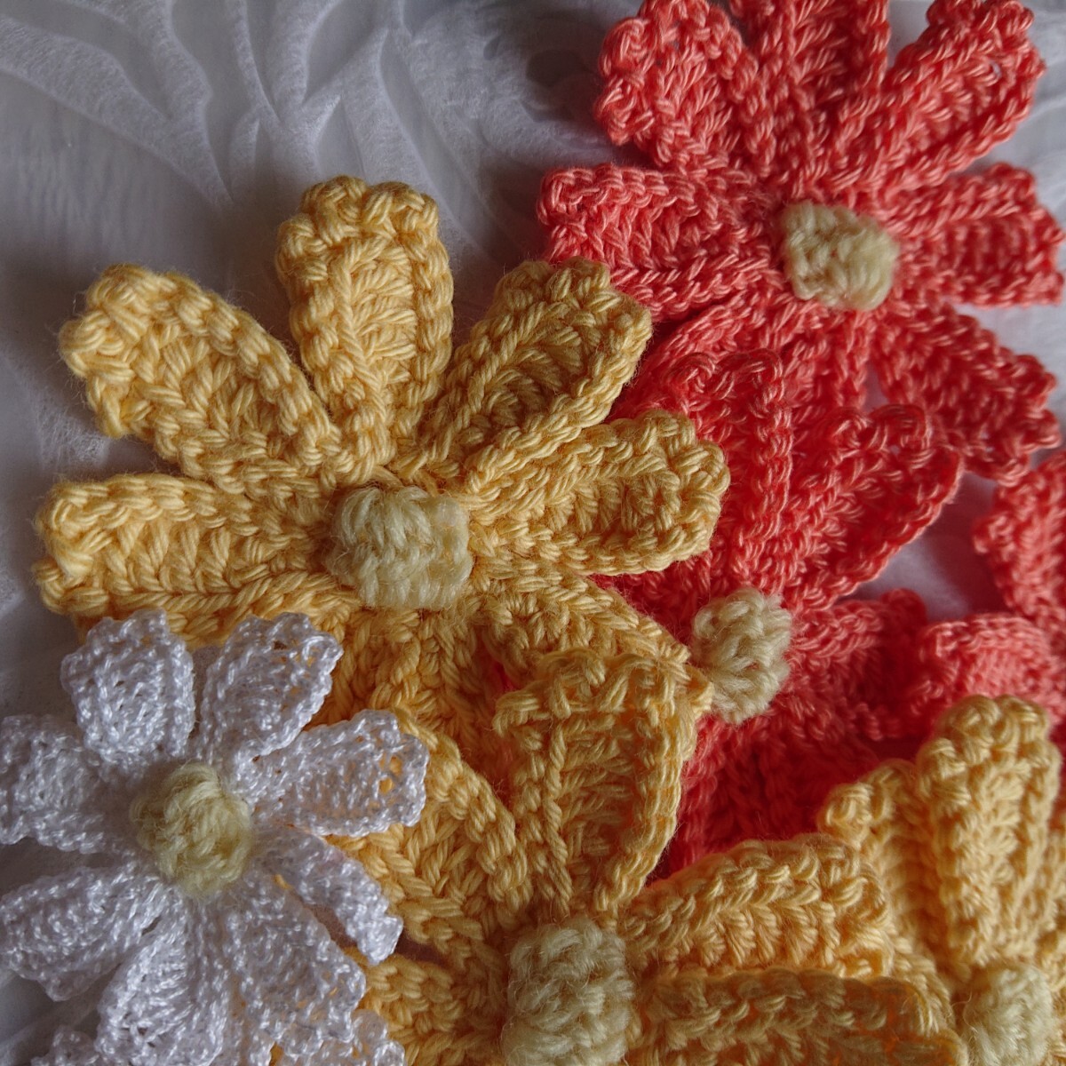 #ピクニック #インテリア カフェ #クローバー #春 桜 #携帯用 手編みモチーフ リメイク 雑貨 アレンジ オーナメント アップリケ カントリーフラワー グルーガン 壁掛け飾り 予備 リース ヘアアクセサリー ヘッドドレス ラリエット ガーラント タペストリー カチューム midorin