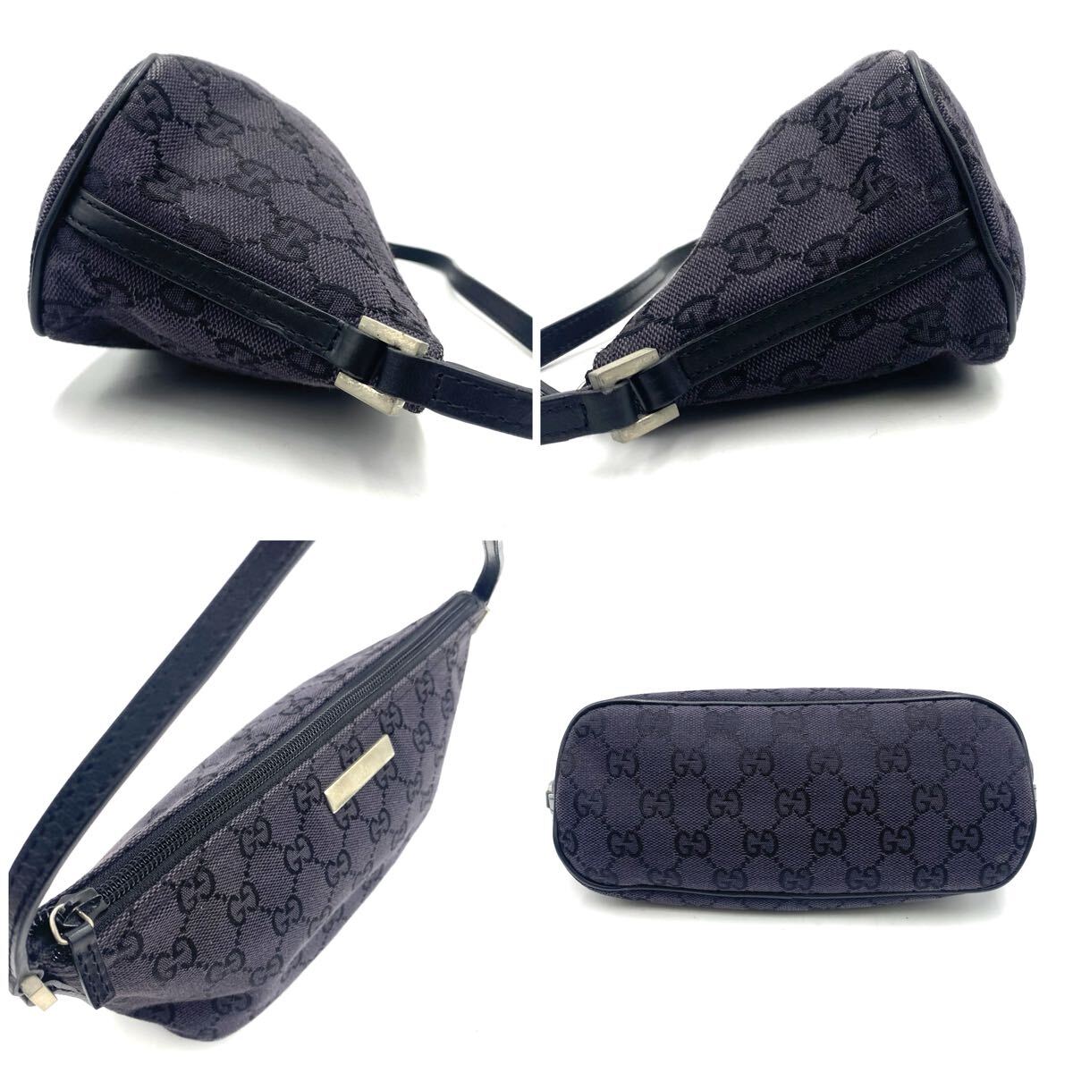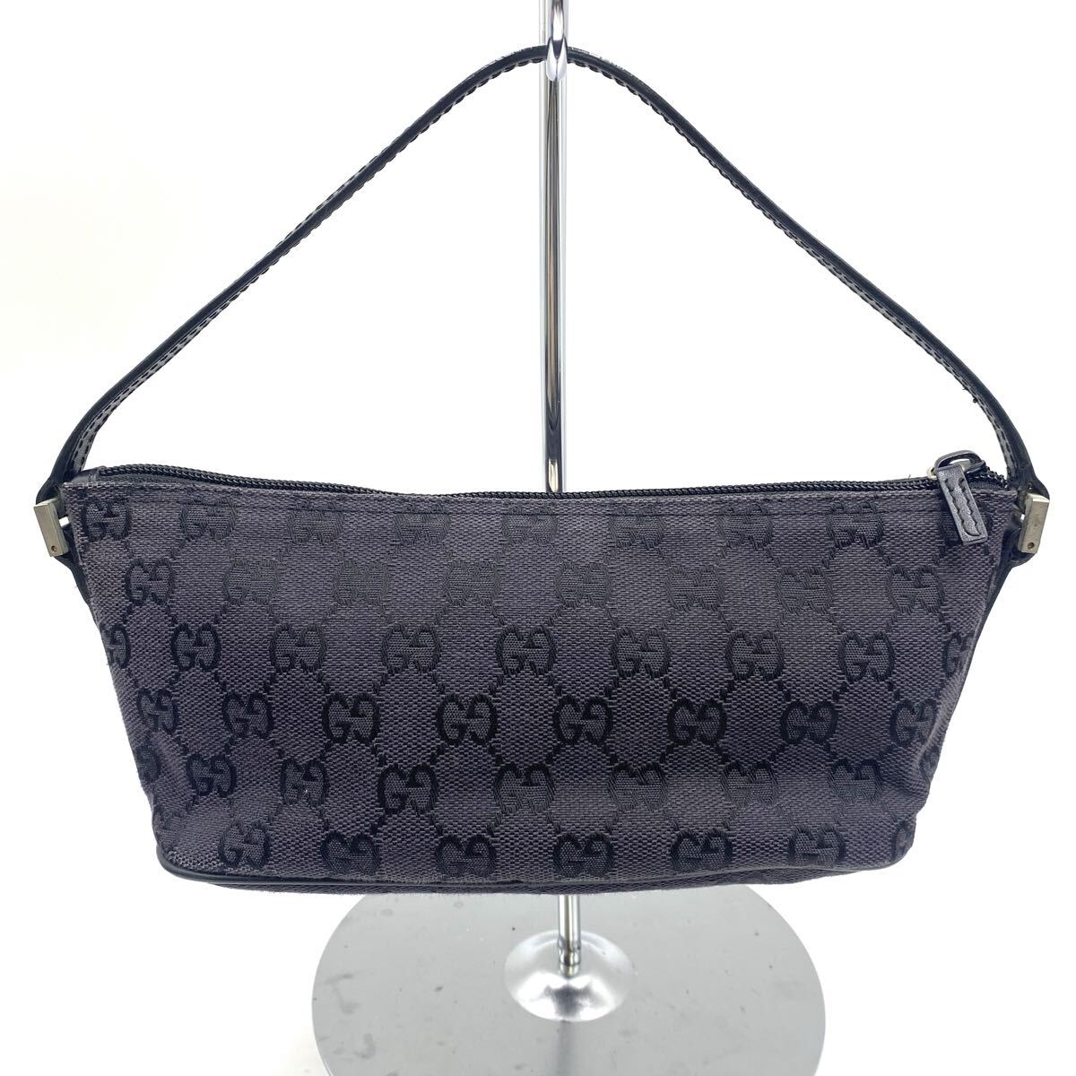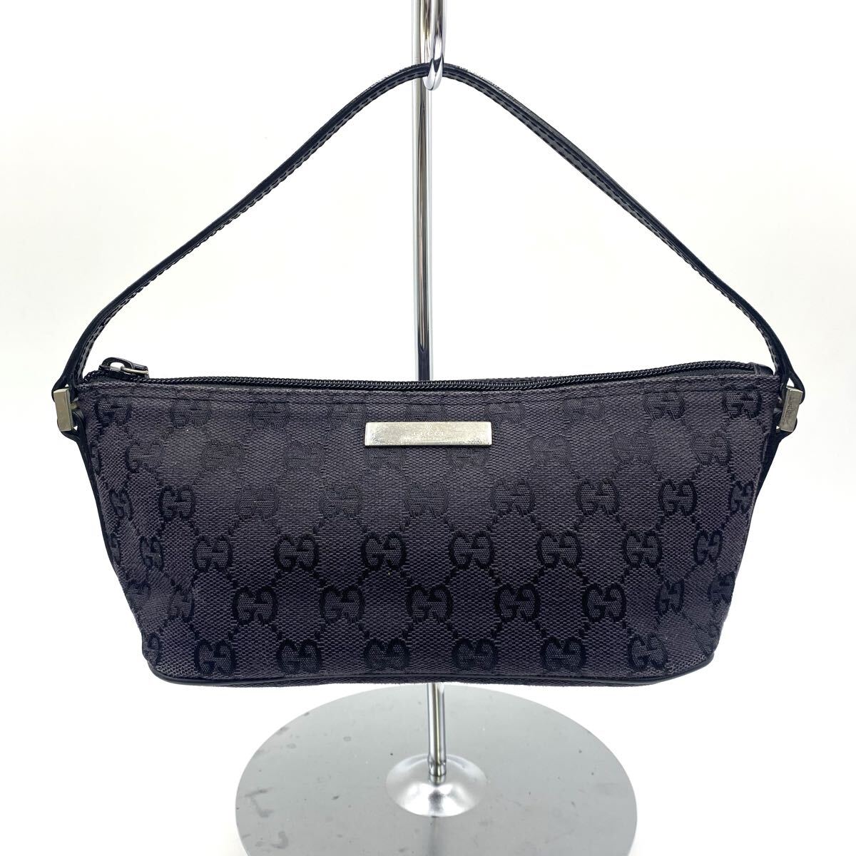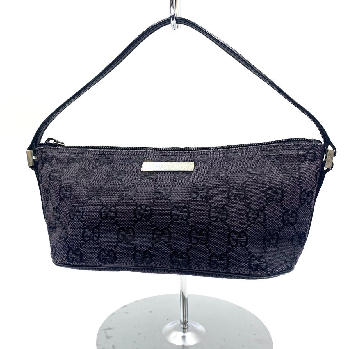 1円〜 【極上品】 GUCCI グッチ GGキャンバス アクセサリーポーチ ハンドバッグ ブラック シリアル有 BSK537
