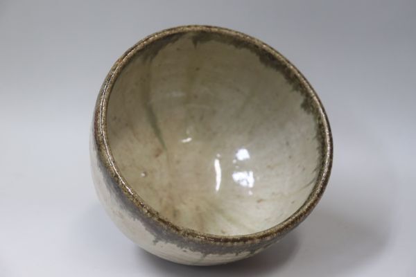 西岡小十先生の朝鮮唐津の茶碗です。 斑釉と鉄釉が窯の中で融合した堂々たる茶碗です。