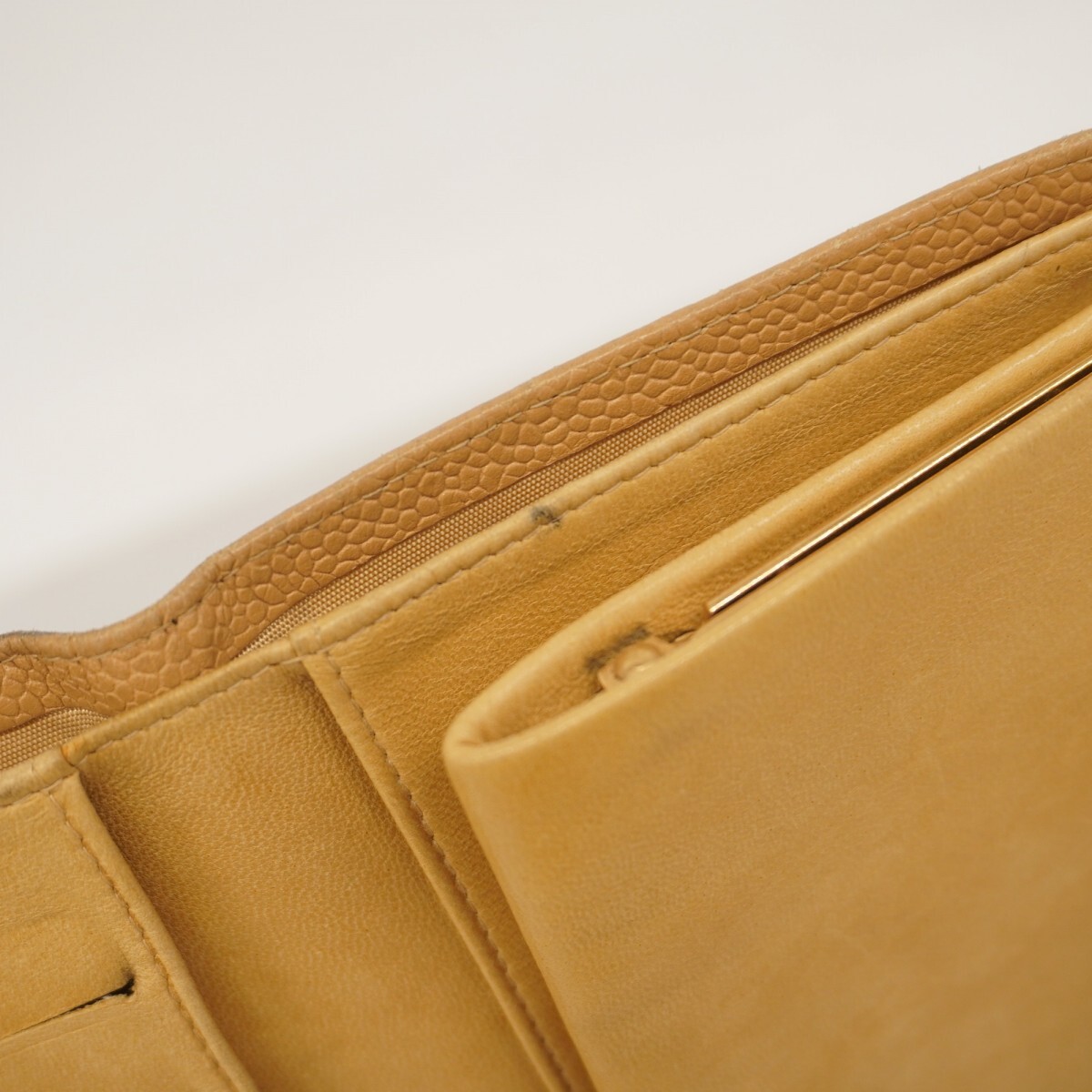 ★SALE【5mc3669-h】シャネル 長財布 キャビアスキン ベージュ ゴールド金具【中古】レディース