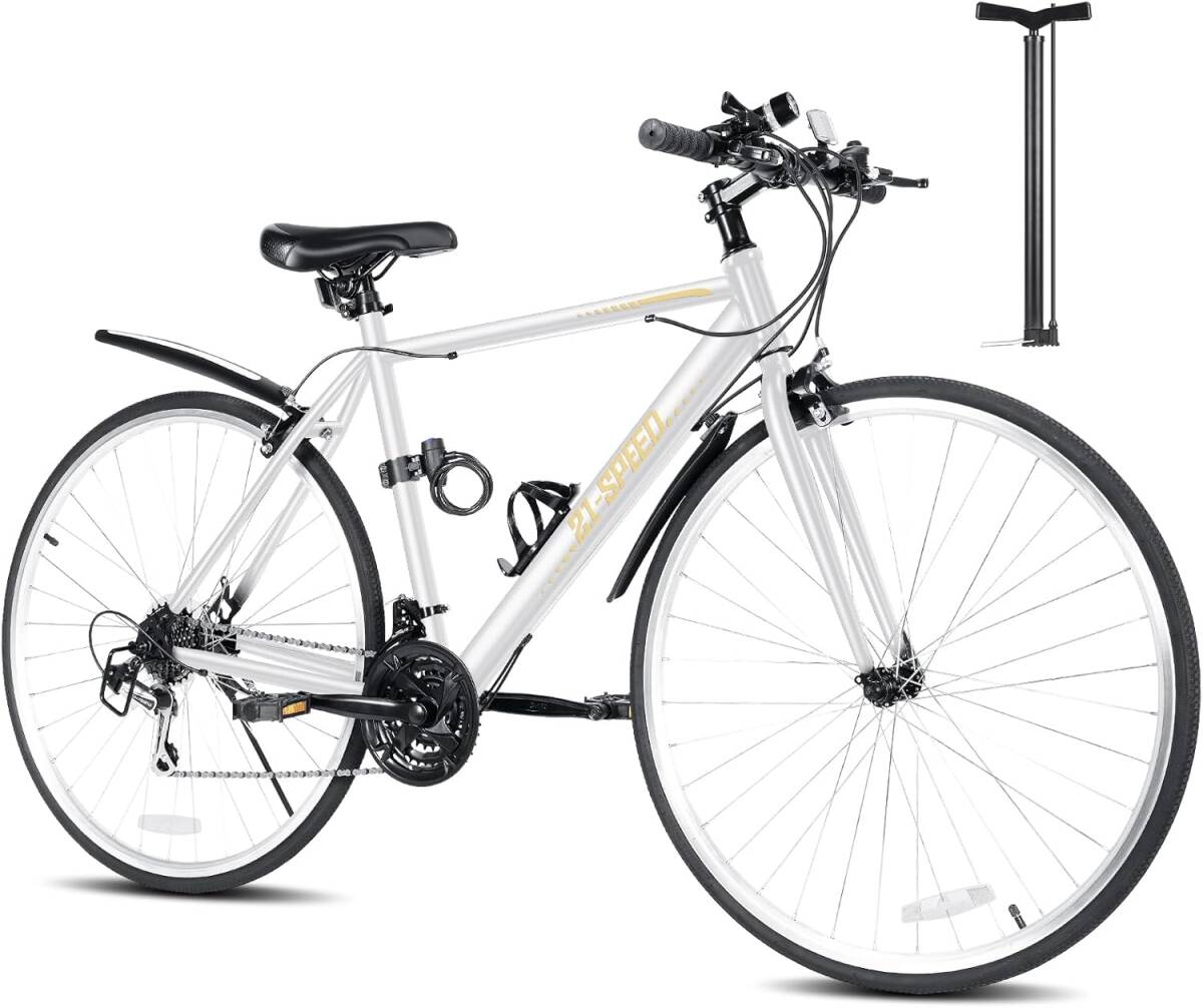 ホワイト色 クリスマスプレゼント 贈り物 専用空気入れ付き Mixiu クロスバイク シマノ製21段変速 自転車 700C 27インチ相当