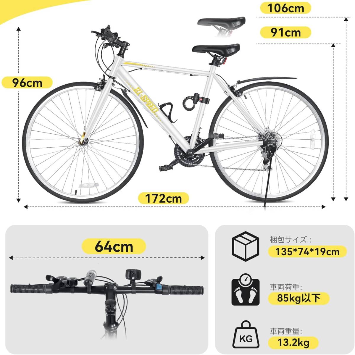ホワイト色 クリスマスプレゼント 贈り物 専用空気入れ付き Mixiu クロスバイク シマノ製21段変速 自転車 700C 27インチ相当