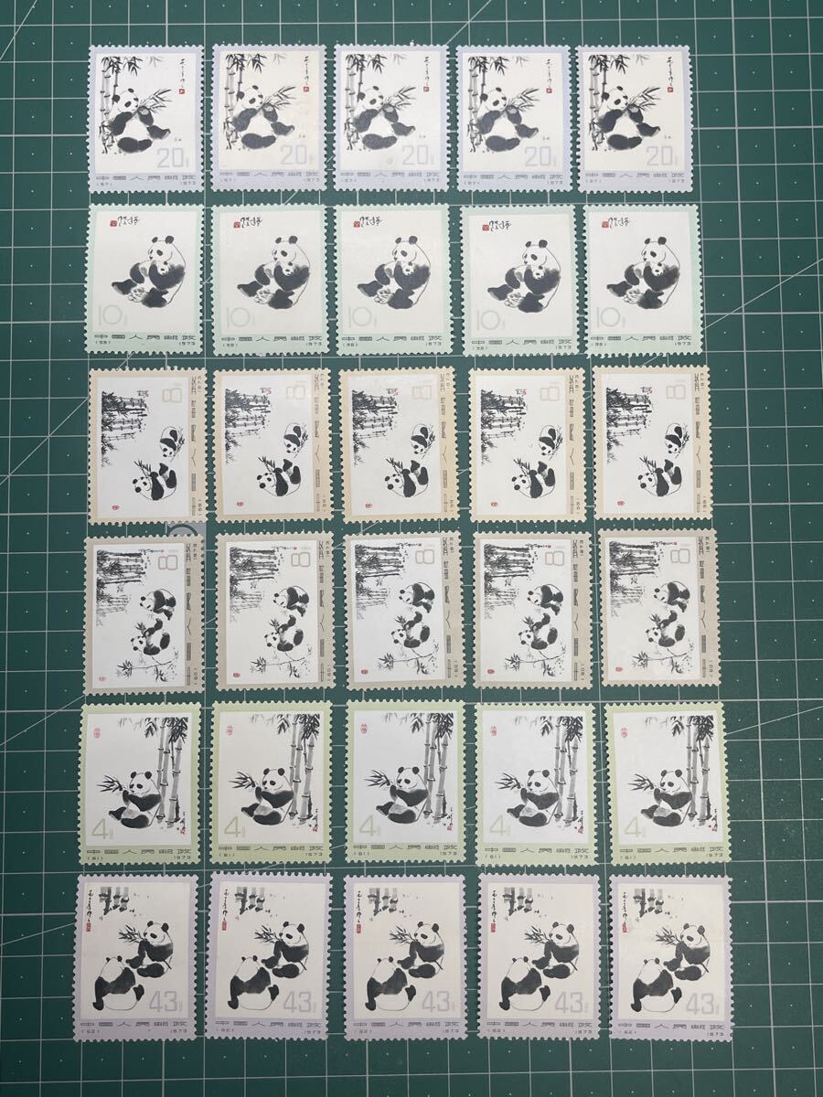 【未使用 】中国切手 1973年 (革14)オオパンダ(2次)6種完 5セット(30枚)おまとめ 消印なし ヒンジ跡なしコレクター放出品