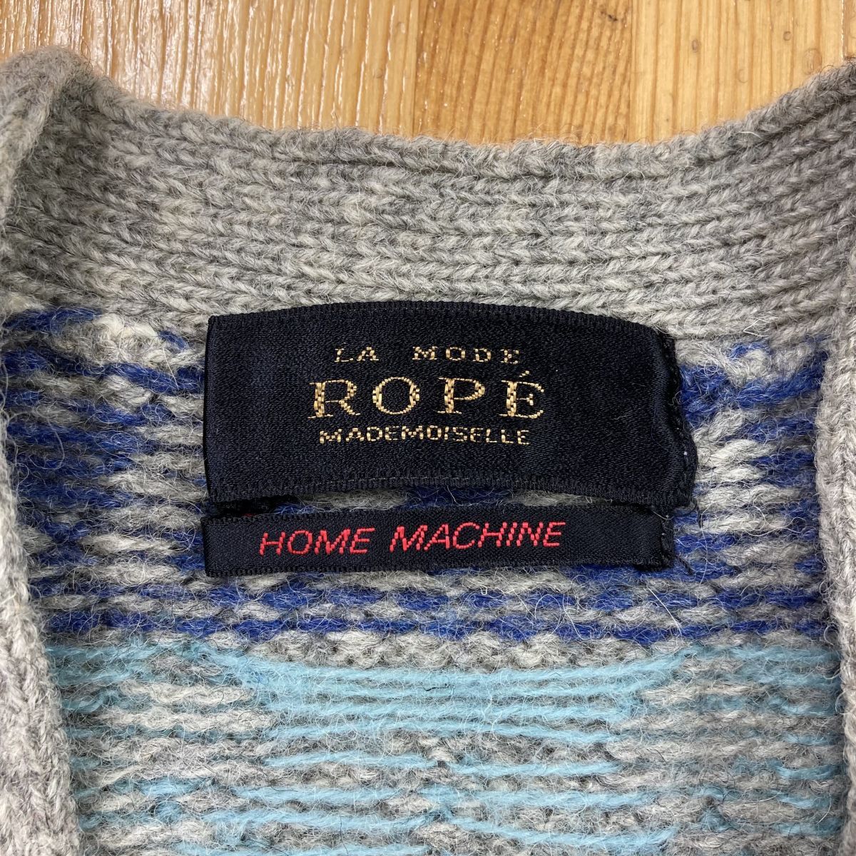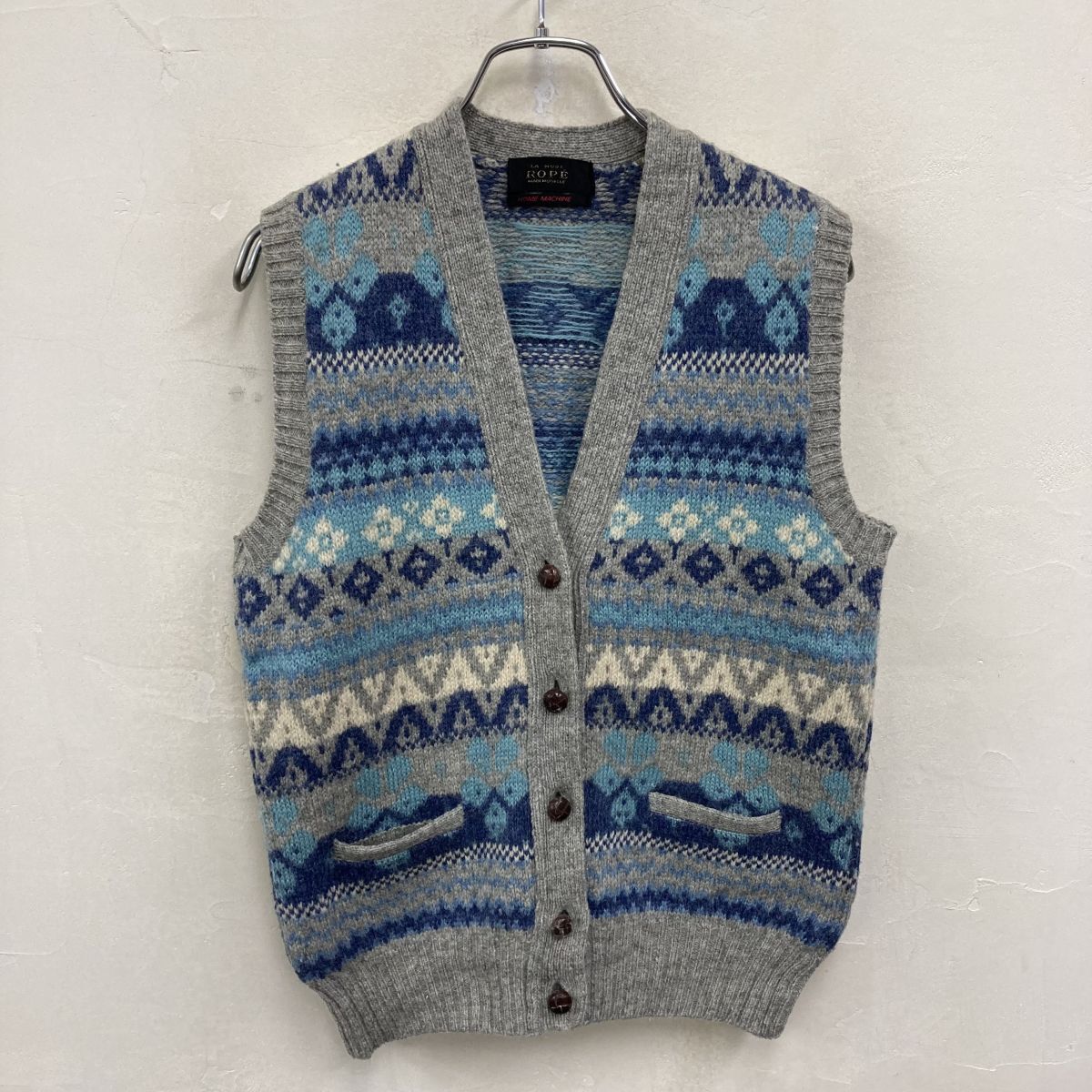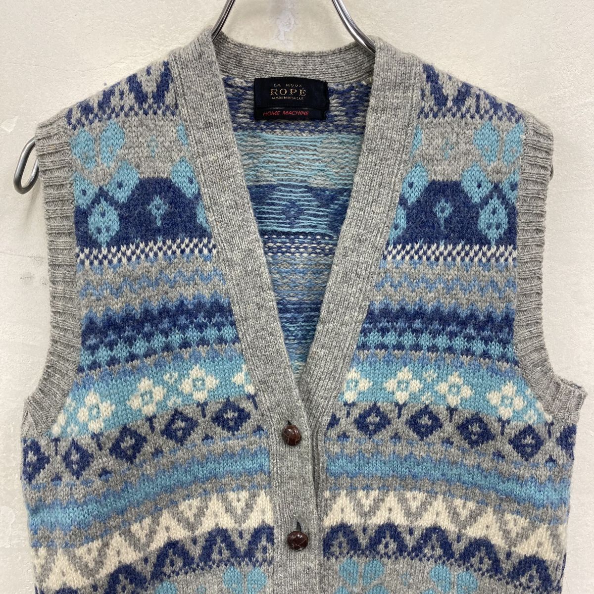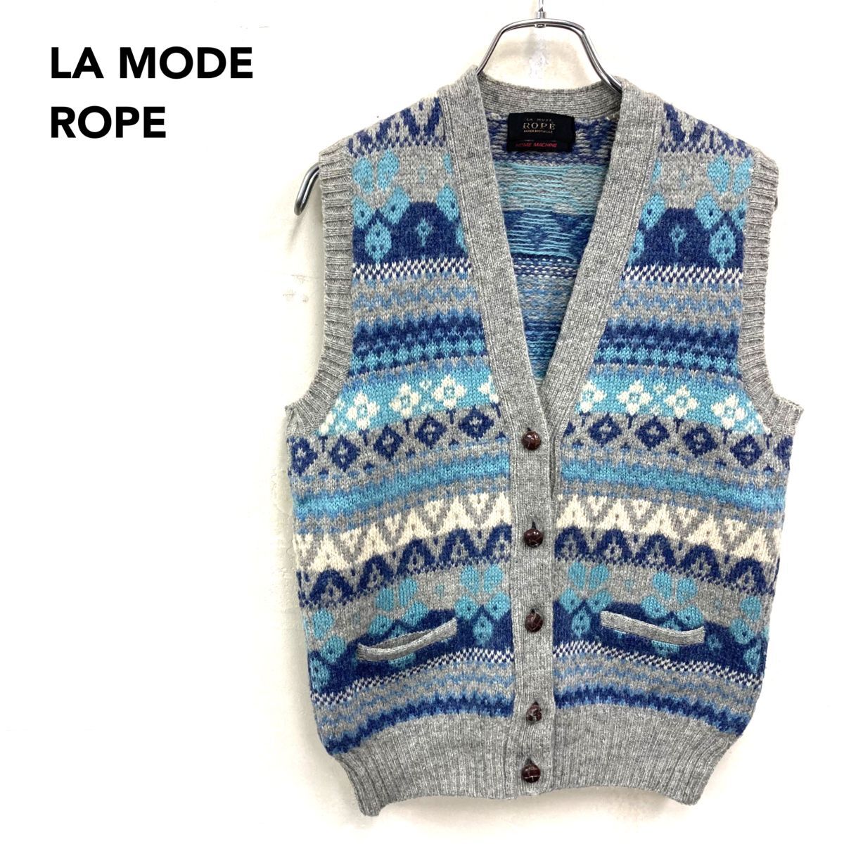 2O3042-W◆LA MODE ROPE ラ モード ロペ ニットベスト ボタン 柄物 カジュアル レディース◆グレー ブルー系 ウール 毛
