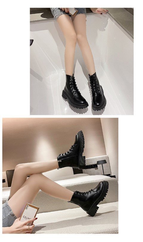 レディース 靴 ミドルブーツ レースアップ 秋冬 ローヒール 黒 ブラック 定番ブーツ 4cm 23.5cm(37) オフホワイト