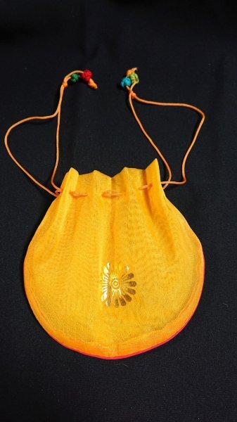 | 韓国 KOREA 巾着 ポーチ 袋 小物入れ バッグ オレンジ オーガンジー 文様入り 金プリント チュモニ 子供用 グッズ 雑貨 未使用 新品 ③ | ||||