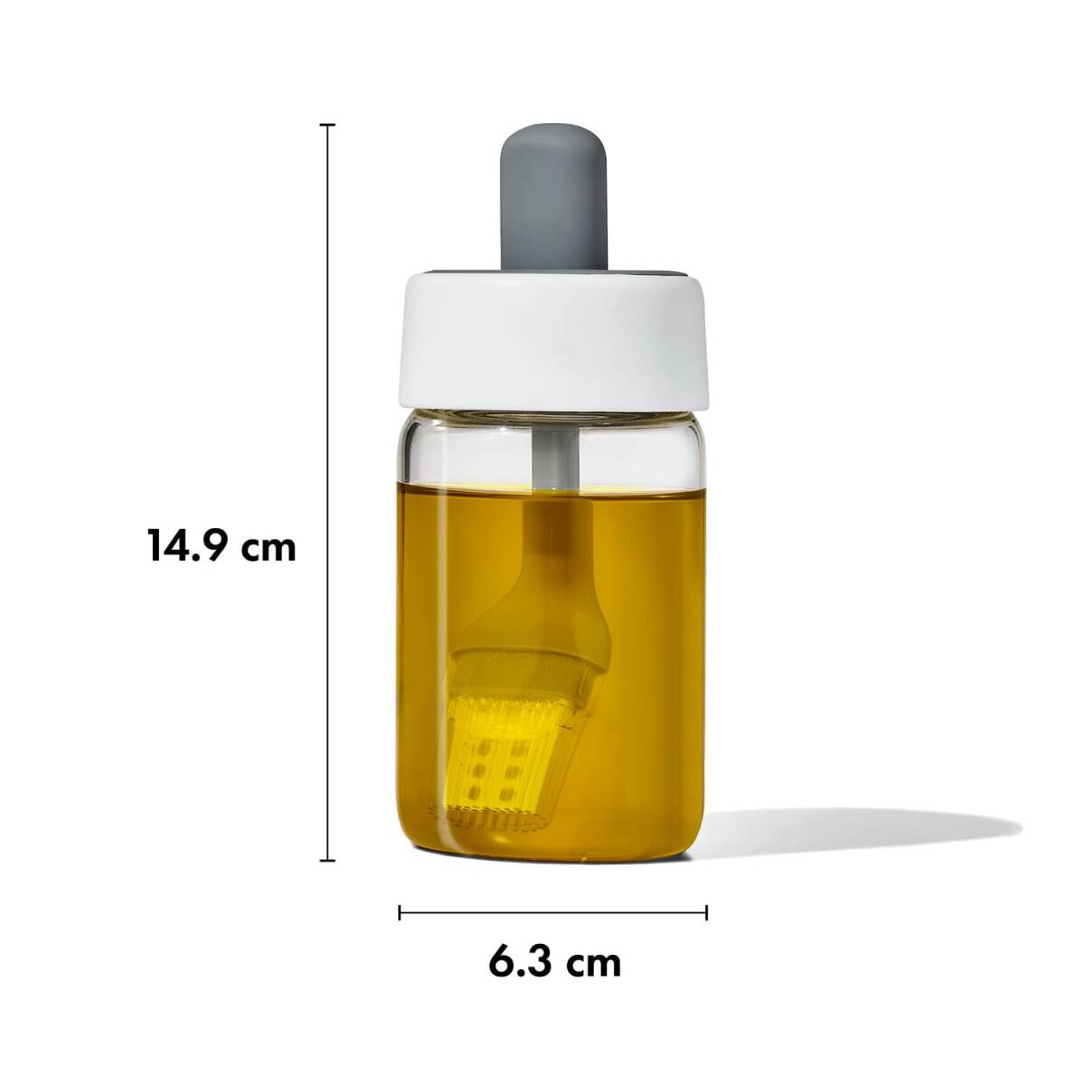 シリコンブラシ一体型のフタで、オイルの量の調整がしやすく、そのまま 保管もできるガラスボトル