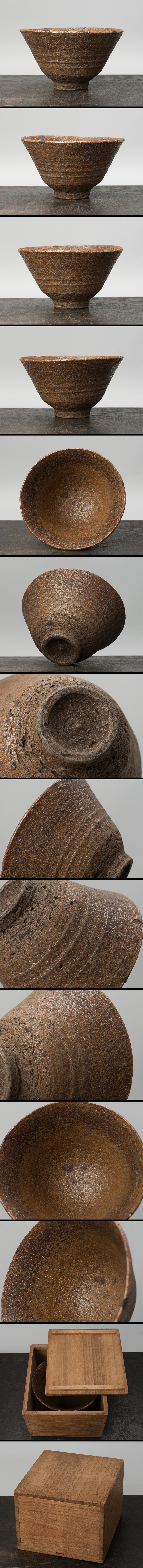 | 古い伊羅保茶碗。合箱有。 サイズは、幅約14.5cm、高さ約8.5cm。 傷・直しありません。 口に数か所、細く黒い直しのように見える箇所があるのですが、カッターの 刃を当てても削れない硬いもので、直しなのかクッツキやフリモノなどを 削ったものなのか判然としません。 合箱に紐がありません。 状態、詳細は画像でご確認ください。 |