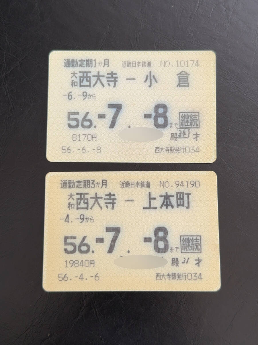 D879 大和西大寺ー小倉/大和西大寺ー上本町 定期券