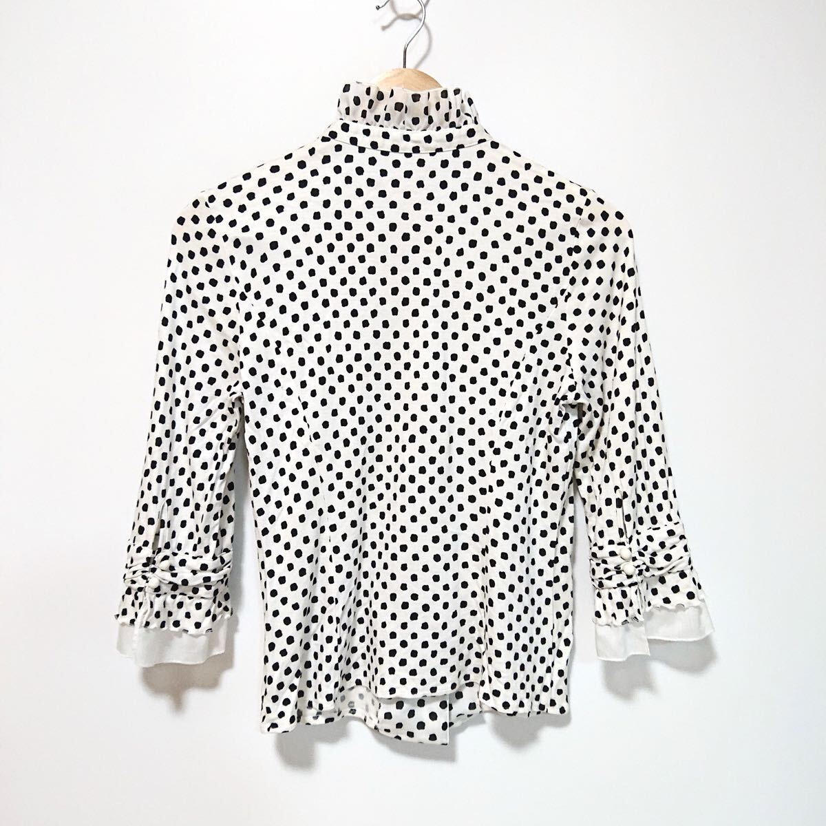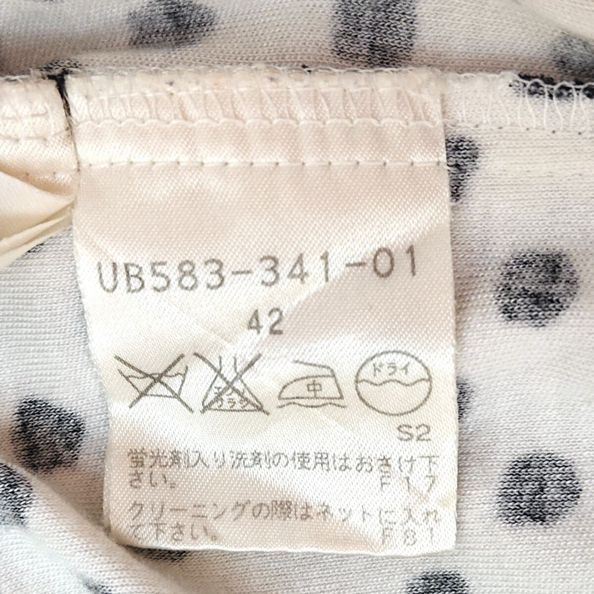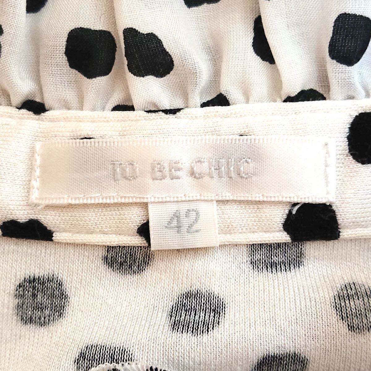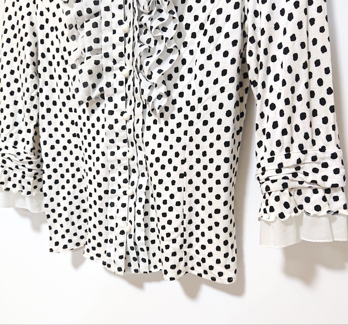 h4820gg TO BE CHIC/トゥービーシック サイズ42(M位) 七分袖カーディガン ドット柄 ホワイト×ブラック レディース フリル お洒落 三陽商会