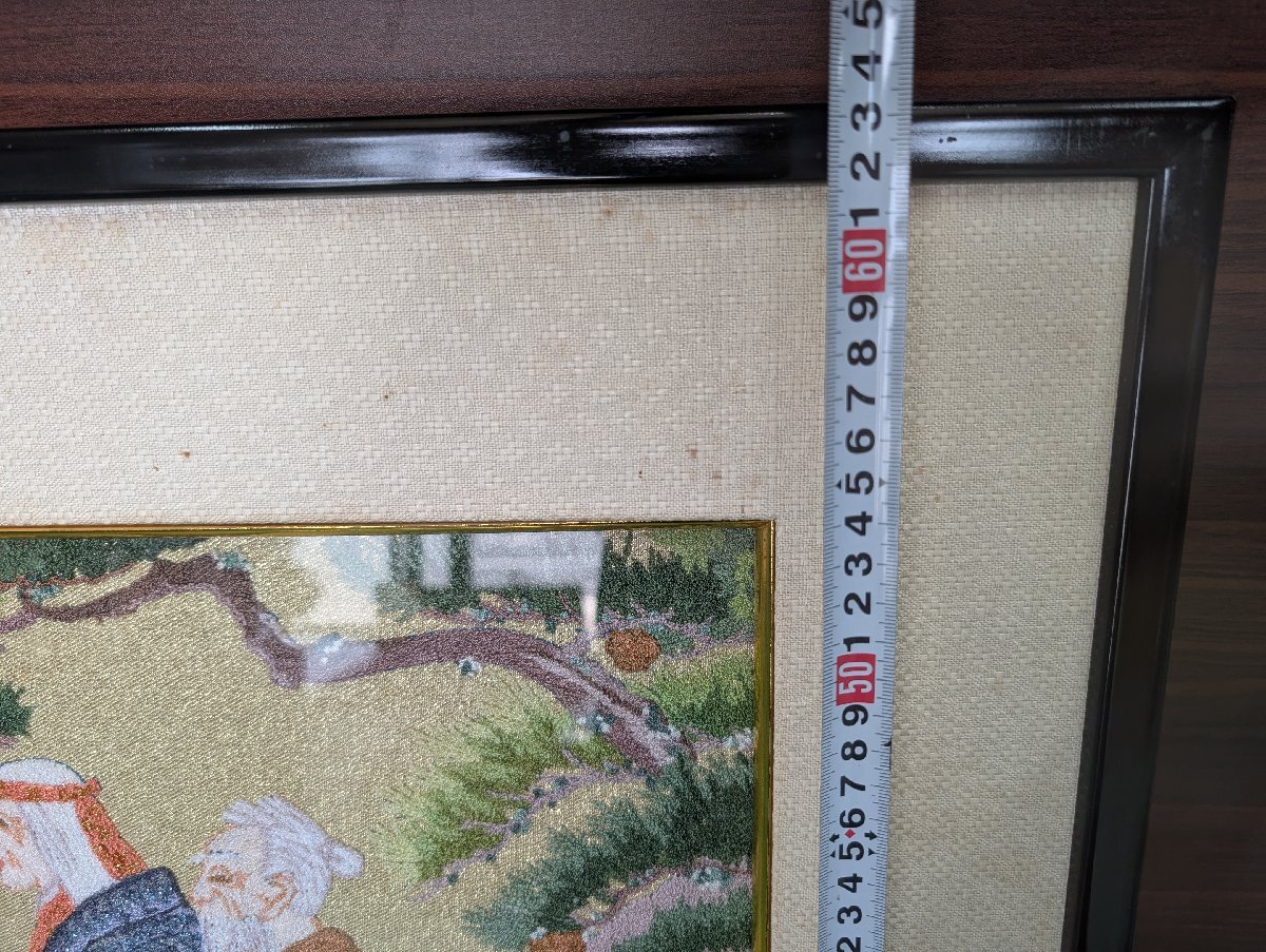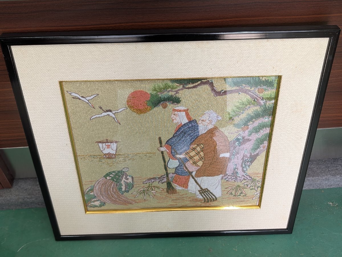 刺繍絵画 刺繍 鶴 亀 宝船 松 夫婦 縁起物 インテリア