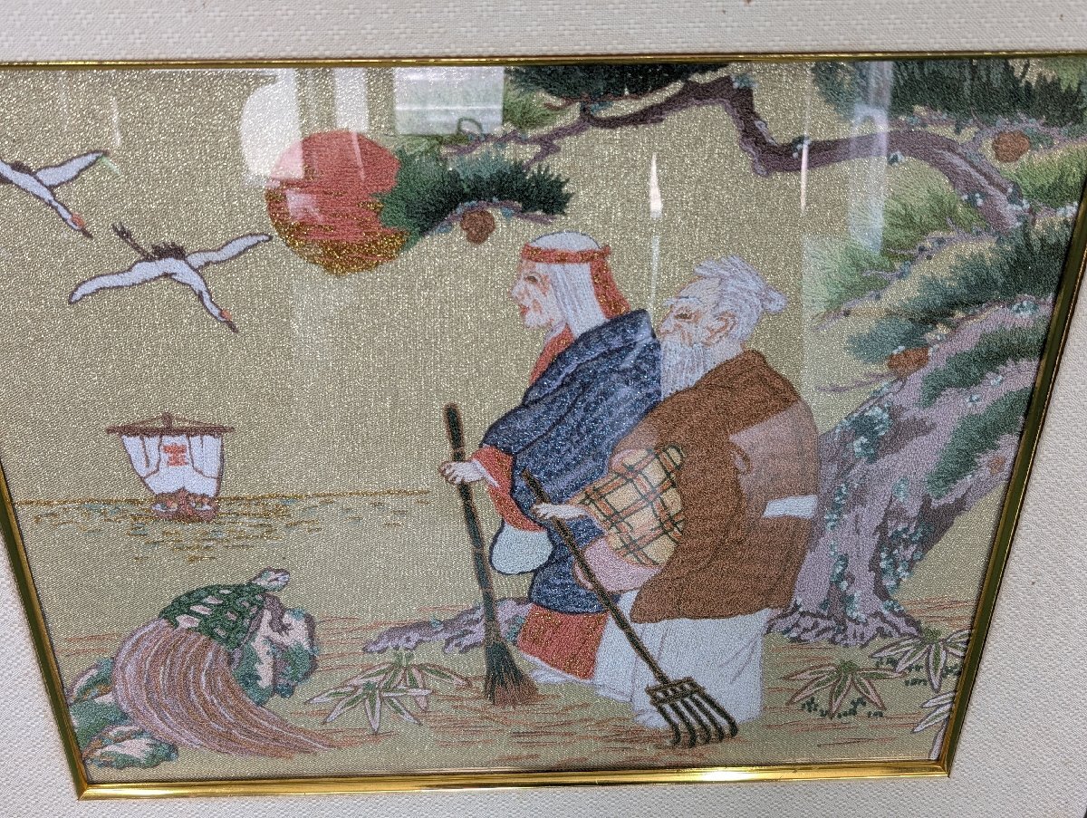 刺繍絵画 刺繍 鶴 亀 宝船 松 夫婦 縁起物 インテリア