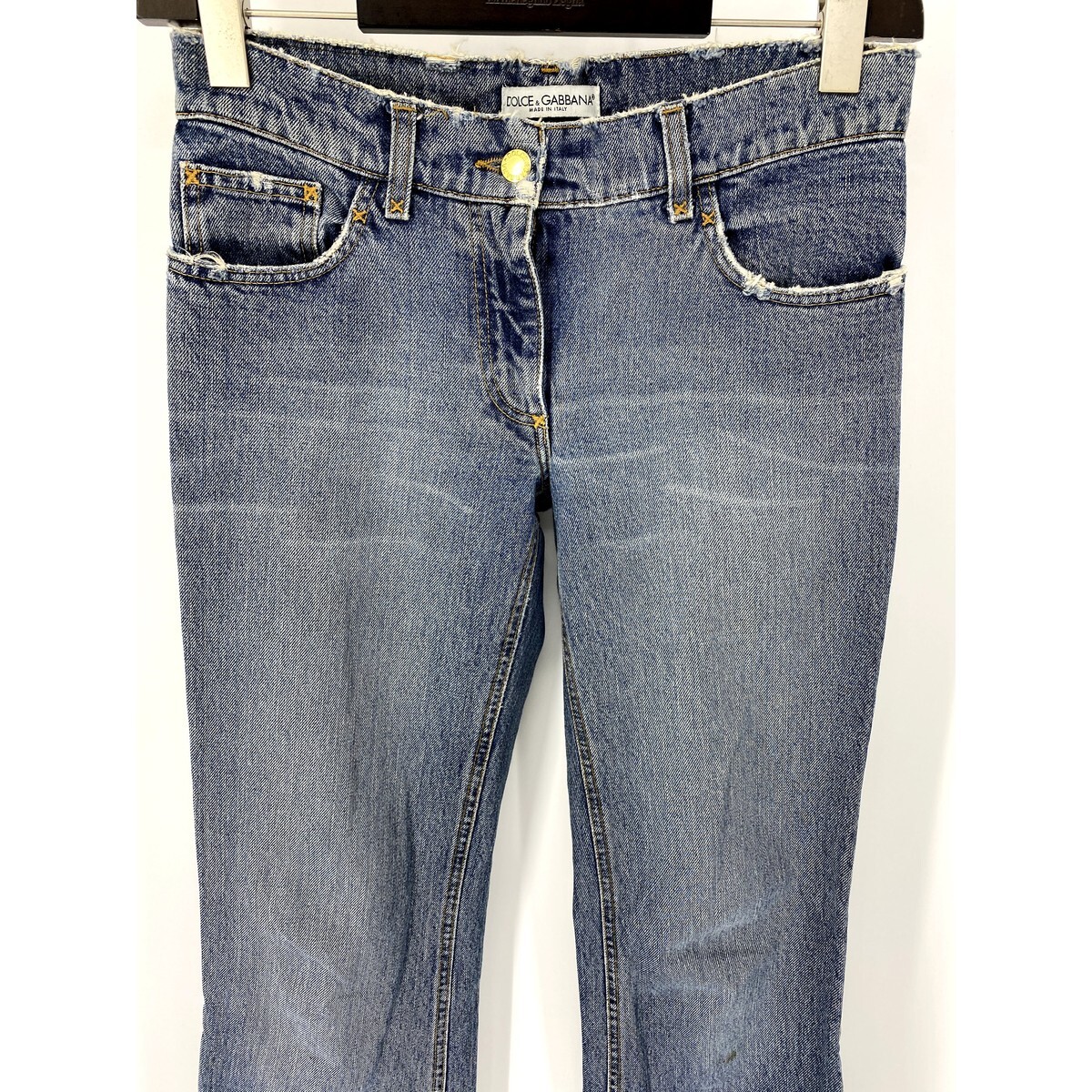 A6164/美品 春夏 DOLCE&GABBANA ドルチェ&ガッバーナ レザーパッチ ストレート ジーンズ デニム パンツ44程 インディゴ/イタリア製 メンズ