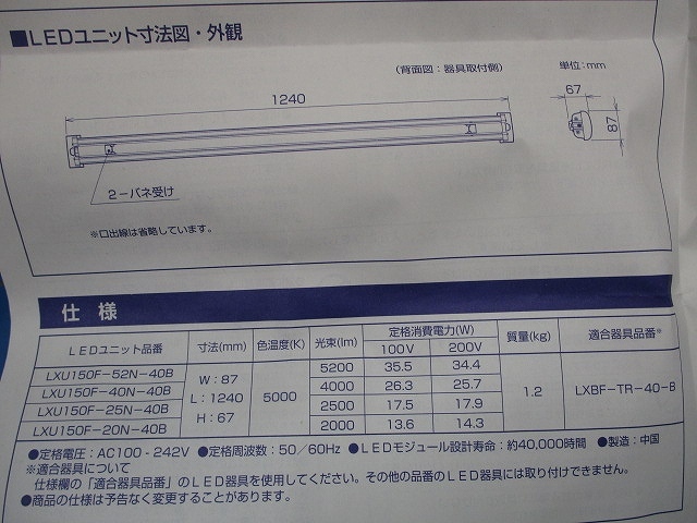 商品型番LXU150F-52N-40B