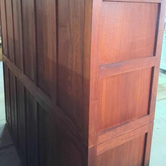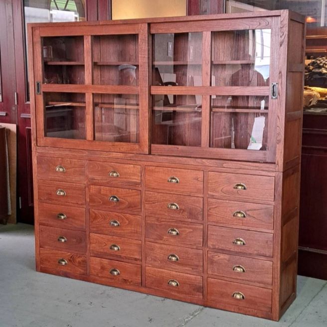 上段、下段に分かれ特大サイズで収納力があり上段のガラス引き戸を外して店舗什器としてお使いになっても重宝すると思います。