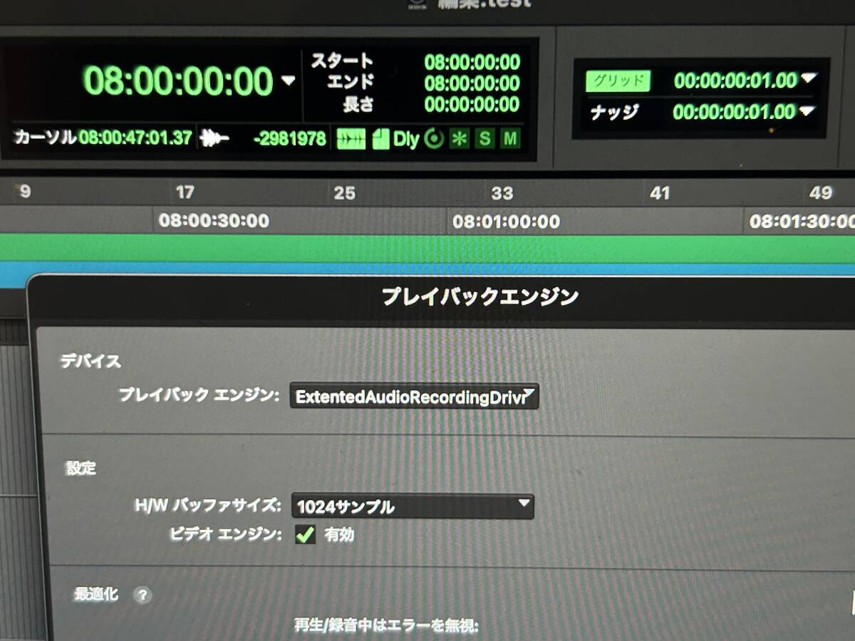 Protoolsは写真の通りプレイバックエンジン/Extented Audio Recording Driverで認識し全く問題なく安定動作しておりました。