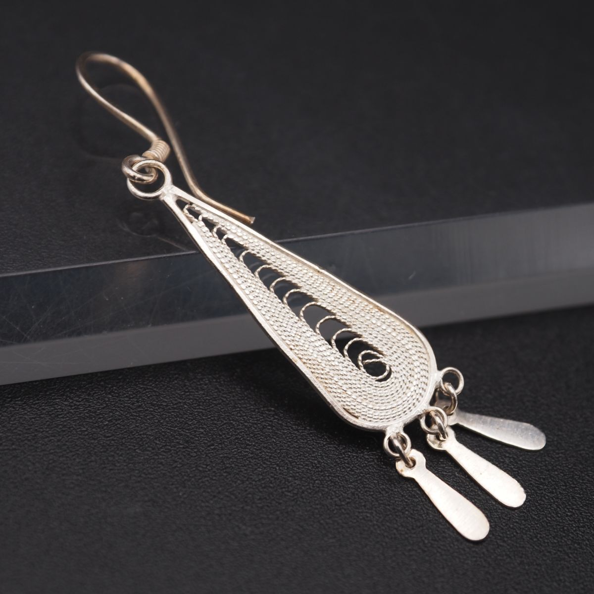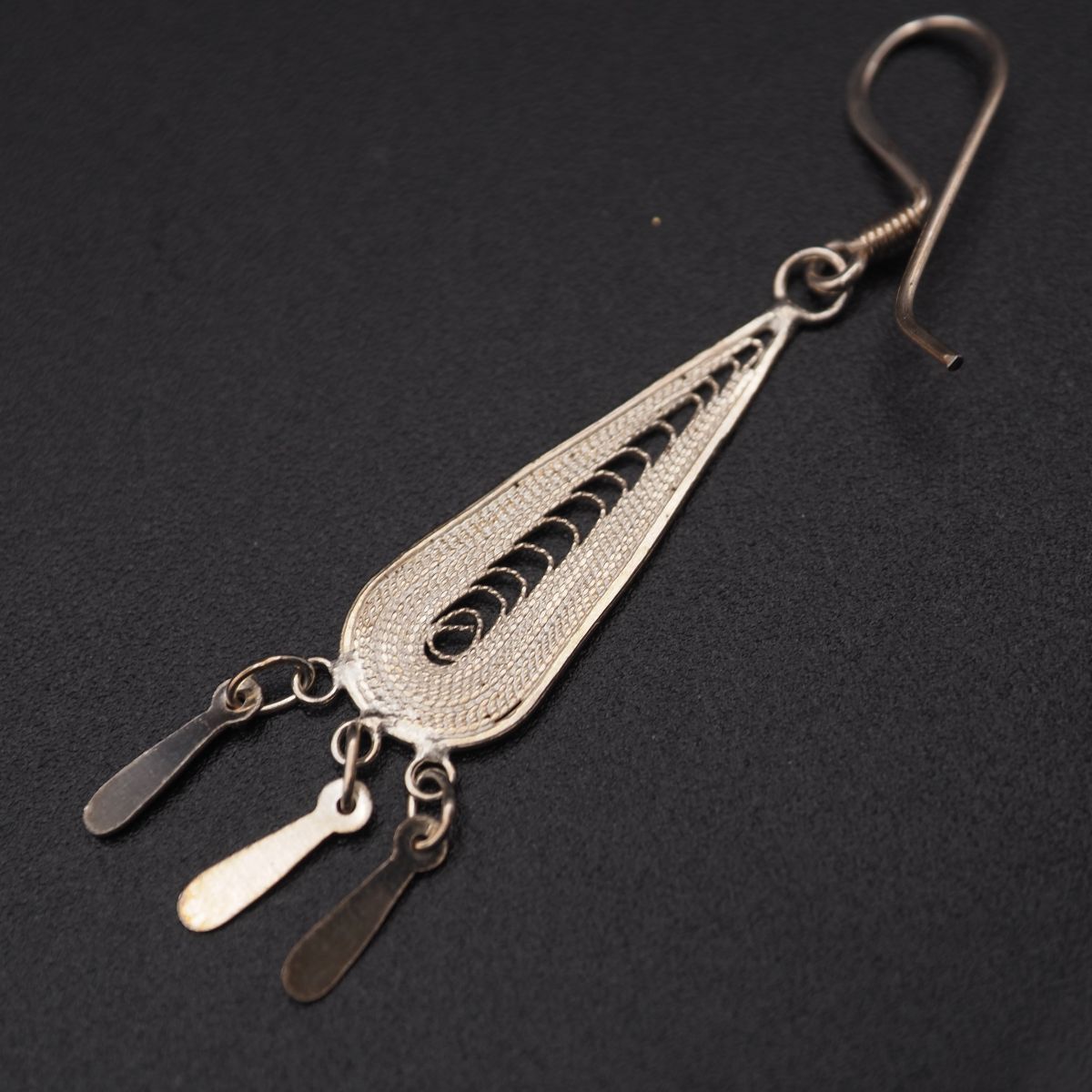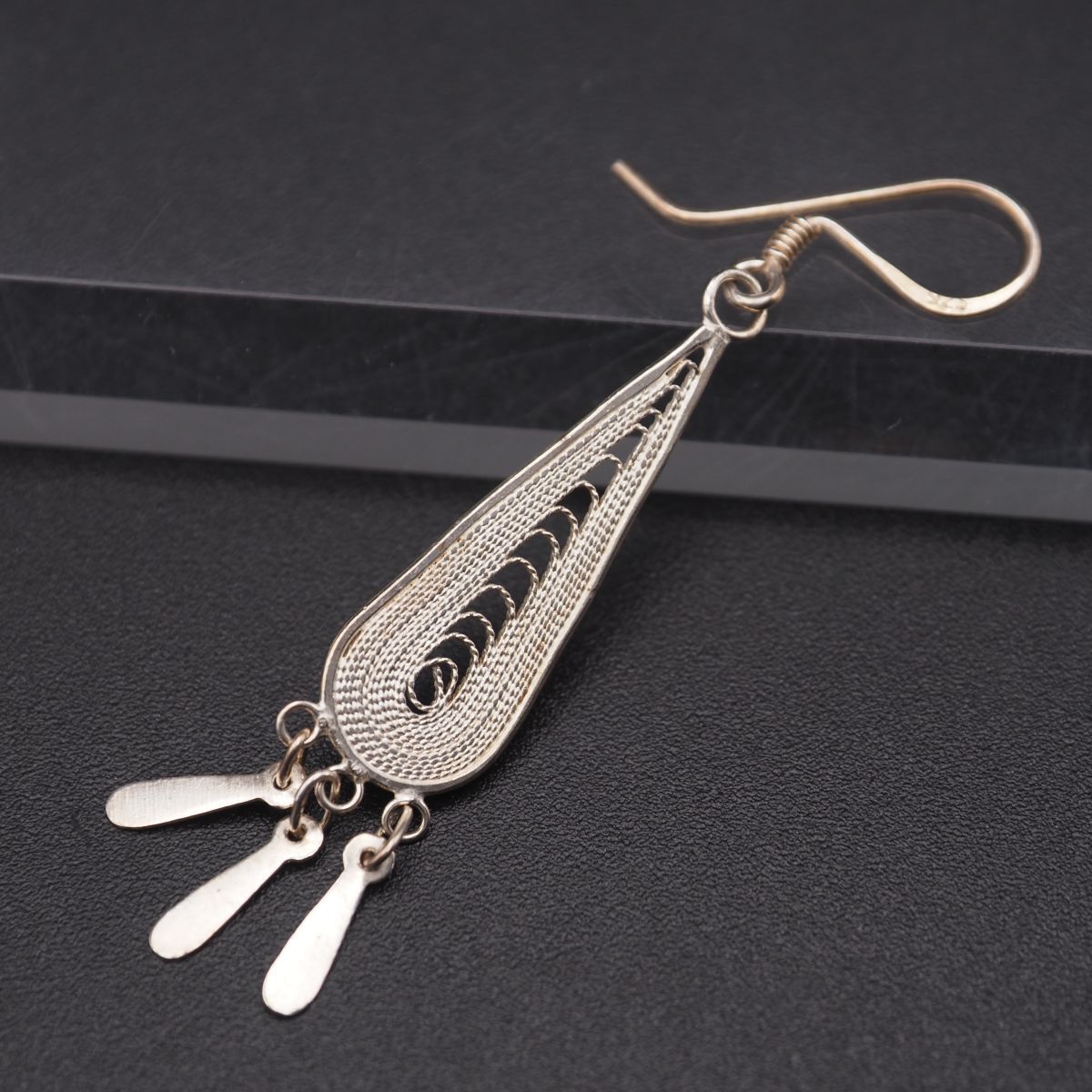 H161 ヴィンテージ 925刻印 ピアス 片耳のみ フィリグリー 銀線細工 ゴールド スウィング デザイン シルバー