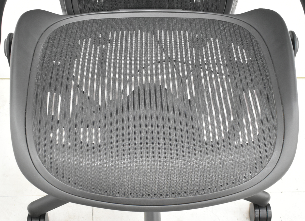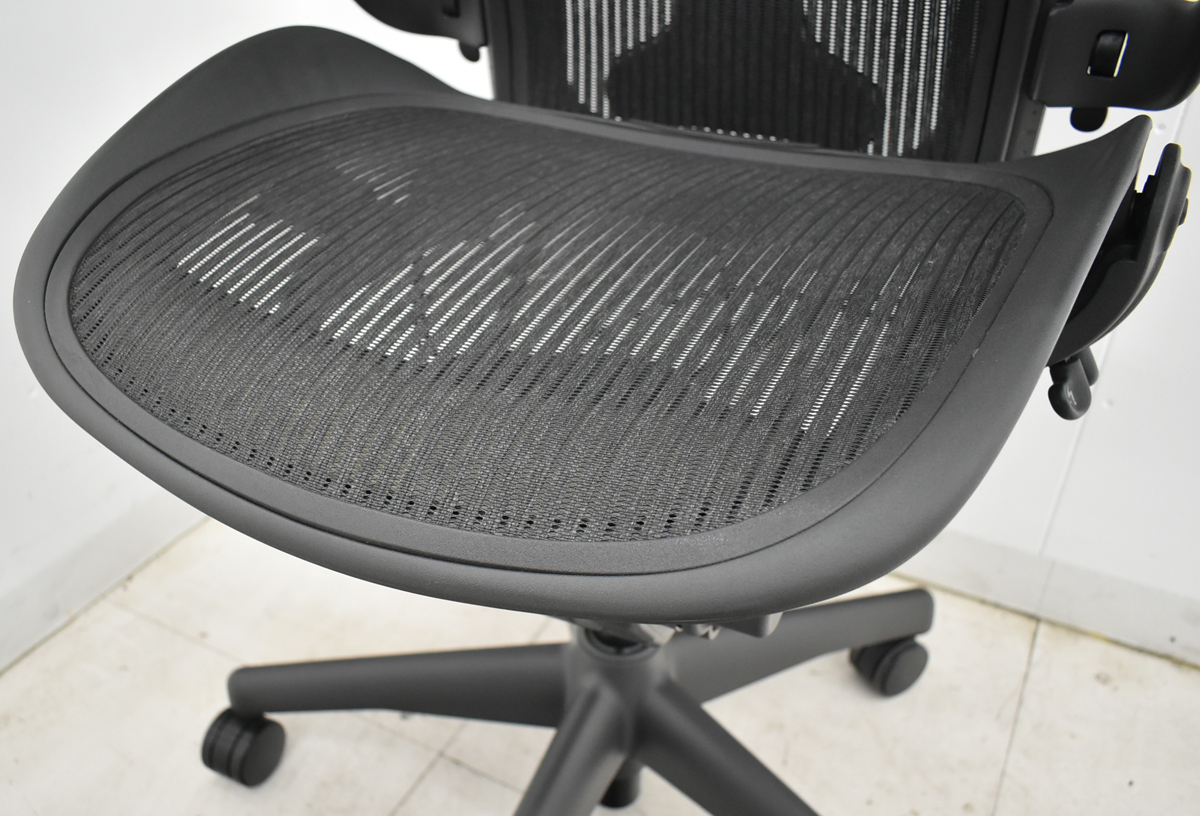 | ■備考 ハーマンミラー アーロンチェア Bサイズ フル装備 ポスチャーフィット 肘レバータイプ(肘パッド新型) ハーマン・ミラーのアーロンチェアです。 ●快適さとサポートの融合 アーロンチェアは1994年の発表以来、エルゴノミックシーティングの基準となっています。それ以来、ハーマンミラーは人々と人々の姿勢を最適にサポートする方法について多くのことを学んできました。 ●自然要素からのデザイン アーロンチェアは、自然から得られるエレメントを中心に、厳選された4つの素材の表情豊かなカラーバリエーションを展開しています。オニキスは、アーロンの現代性を追求したドラマチックなウルトラブラックが特徴です。グラファイトは、特徴的なダークグレーで、クラシックな質感の仕上がりです。カーボンは、バランスの取れたニュートラルなカラーで、クールな雰囲気から暖かい雰囲気の空間まで、どこでも良くなじみます。ミネラルは最も軽く、アーロンを細部まで明るくするので、開放的なフロアプランやスペースに理想的です。チェアの各コンポーネントは慎重に設計されており、基本的に調和のとれた配色になっています。 ●よりインクルーシブなチェア アーロンの3つのサイズ、A、B、Cは、幅広い体型に対応できるように正確に設計されています。人間工学に基づいたチェアの多くは、5パーセンタイルから95パーセンタイルの人に適していますが、背もたれの高さから座面の幅、チルトメカニズム、ベースのサイズに至るまで、さらに幅広い範囲の人に合ったチェアが適していると、私たちは考えています。アーロンは、1パーセンタイルから99パーセンタイルまで、ほぼすべての人に適しています。 デザイナー: Bill Stumpf & Don Chadwick (ビル・スタンフ、ドン・チャドウィック) 両者のリサーチから生まれたハーマンミラー社の椅子。それが、アーロンチェアです。人間のあらゆる動作にフィットする椅子で、まるで着慣れた服のような快適さを提供してくれます。背に使われている「ペリクル」は、着座時に、体重をシートと背もたれに均等に分散させます。また、メッシュになっているため、通気性がよく、長時間座っていても快適にオフィスワークをすることができます。 エルゴノミクス(人間工学)を追求したアーロンチェアのこだわり。 ペリクルサスぺンション機構 シートの背もたれには、アーロンチェアならではのメッシュ地の画期的新素材を使用。通気性が良く、さらに体重が均等に分散されるため長時間座っていても疲れません。 キネマット・チルト機構 キネマットチルト機構は革新的なチルト機構です。これまでのチェアのチルト機能は筋肉を使いリクライニングしていました。アーロンチェアのチルトメカニズムは、足首、膝、腰 肩、首を軸としたチルトを可能としました。これにより、自然な身体の動きを妨げず、重心の前後の移動のみでリクライニングが可能となりました。30度のリクライニングの範囲内で常に身体のバランスを保ち、適切にコントロールします。作業中のあらゆる姿勢を健康的かつ快適なものとします。 フル装備ですので全ての機能が利用可能です。 ○シート高さ(ガス圧式) ○リクライニングの硬さ調節 ○前傾チルト設定 ○リクライニングの範囲設定 ○アーム高さ調節 ○アーム角度アーム角度調節 ○ポスチャーフィット ※バナナクッションを新品(シーフロントインサートフォーム・メーカー社外品)に交換してあります。 ※ハーマンミラー製のアーロンチェア(クラシックタイプ)用の上下昇降用ガススプリングを新品(新品・社外品・純正品と同一メーカー製)に交換することが可能です。 以下のリンクの商品をアーロンチェアと同時にご購入ください。 上下昇降用ガススプリングはこちら 商品のポスチャーフィット部のウレタンクッションは、湿気によって分解(加水分解)することにより硬化・分解が進む消耗パーツです。 この商品も劣化がある程度進行しています。現状のままお使いいただいても特に使用感には差しさわりがないと存じますが、メーカー純正品に交換してお届けすることも可能です。メーカー純正品ポスチャーフィットPJサポートパッド交換の追加料金(工賃込み):3,872円(税込)上記をご希望の場合はご注文時にお申し付けください。 建物内への搬入作業や梱包残材の回収をご希望される場合は、アートセッティングデリバリー(家財おまかせ便)でのお届けで対応可能です。 アートセッティングデリバリー(家財おまかせ便)でのお届けの場合の送料はお見積りとなります。 ご注文前にお見積りすることも可能ですし、ご注文時やご注文後にその旨ご希望いただければ対応させていただきますのでお申し付けください。 クリーニングとメンテナンスをしっかり行ってお届けします。 この商品の程度は中古品として美品といえます。 多少の擦れや傷はあるものの気になる程ではないでしょう。 御使用端末の環境により多少画像の表示色と実物の色