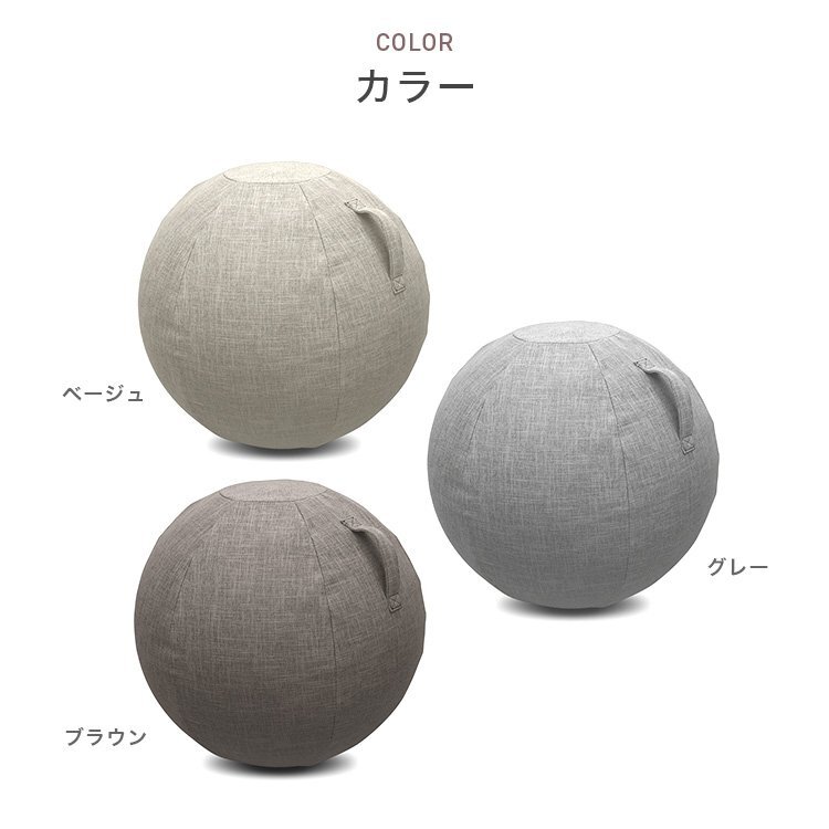 お洒落でインテリアにぴったりデザインで オフィス、リビングなど置く場所を選びません! また、軽量かつ持ち手付きなので持ち運びも楽々! 座ったまま簡単に体幹トレーニングや ソファの上でくつろいでいるときのオットマンとしても◎ 底面は、安定しやすく転がりにくい仕様ですので、 座り心地に安定感があります。 【商品仕様】 内容:インナーボール、カバー、空気入れ カラー:グレー サイズ:(約)65cm×65cm×10cm 材 質:インナーボール/ポリエステル ファブリックカバー/PVC 耐加重:(約)200kg |