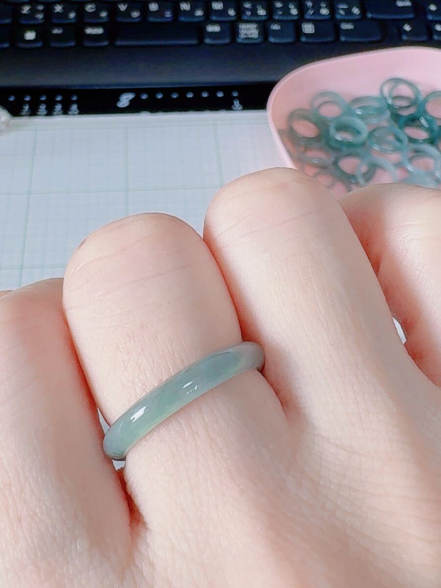 R2-02616天然本翡翠《本物保証》 藍水翡翠 指輪約16~17号 一点物 希少 縁起物 お守り 魔除け 昇進 成功 風水 金運 財運 幸運 幸福